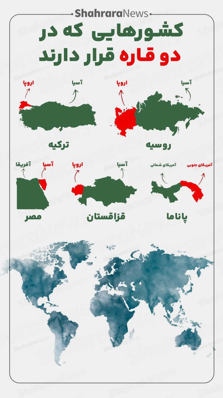 اینفوگرافی| کشورهایی که در دو قاره قرار دارند
