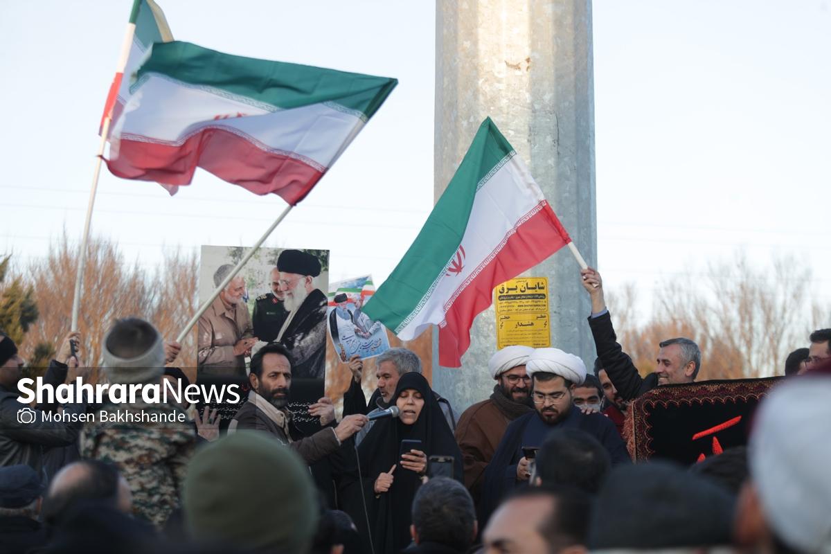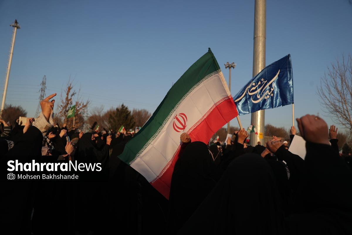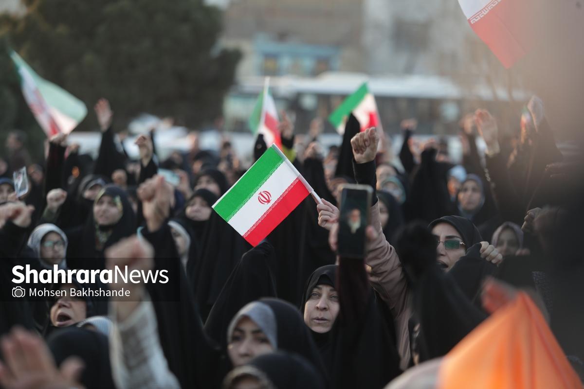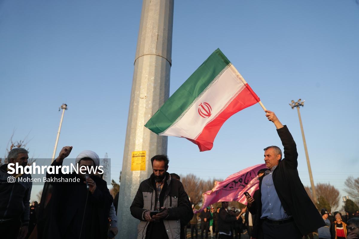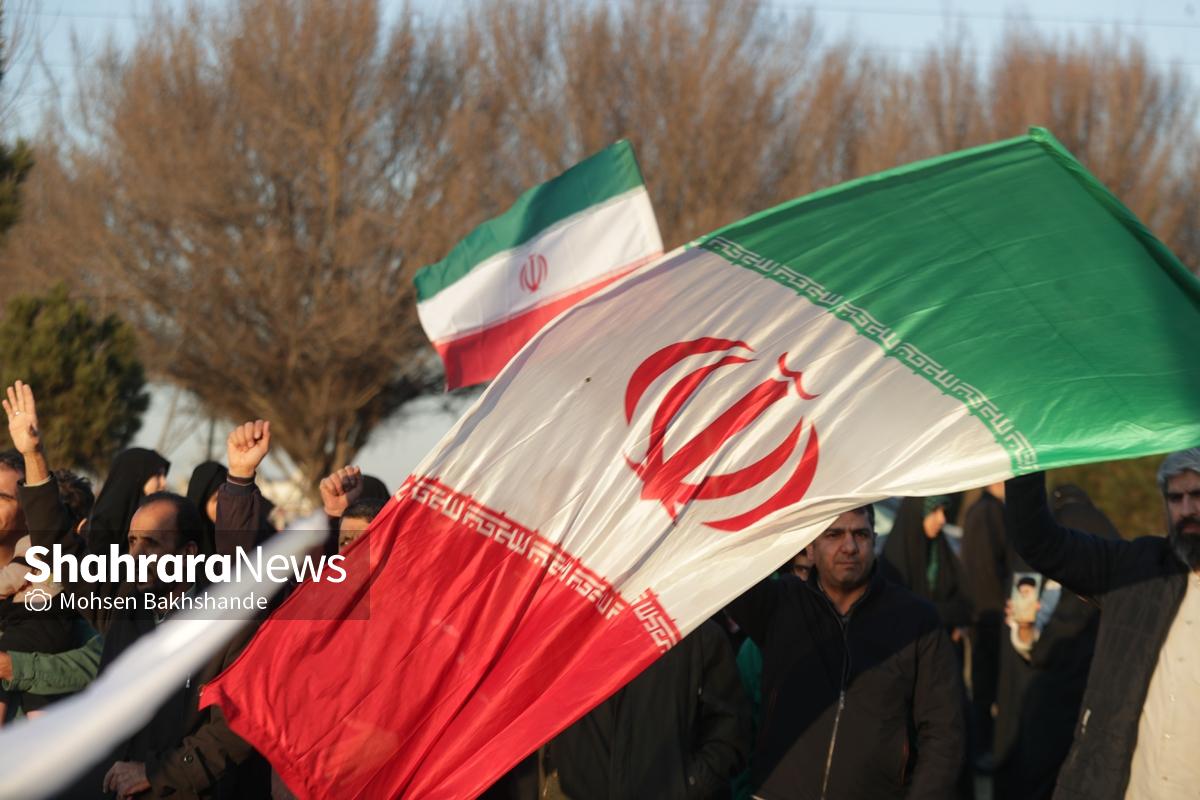 به دنبال توهین اغتشاشگران به پرچم سربلند ایران که نماد همبستگی و دل دادگی به وطن است، مردم شریف مشهد امروز پنجشنبه ۱۸ دیماه ۱۴۰۴ ساعت ۱۵ با شعار «این پرچم هرگز به زمین نخواهد افتاد» تجمع کردند این مراسم در میدان فجر مشهد (مقابل پرچم ایران اسلامی) برگزار شد.