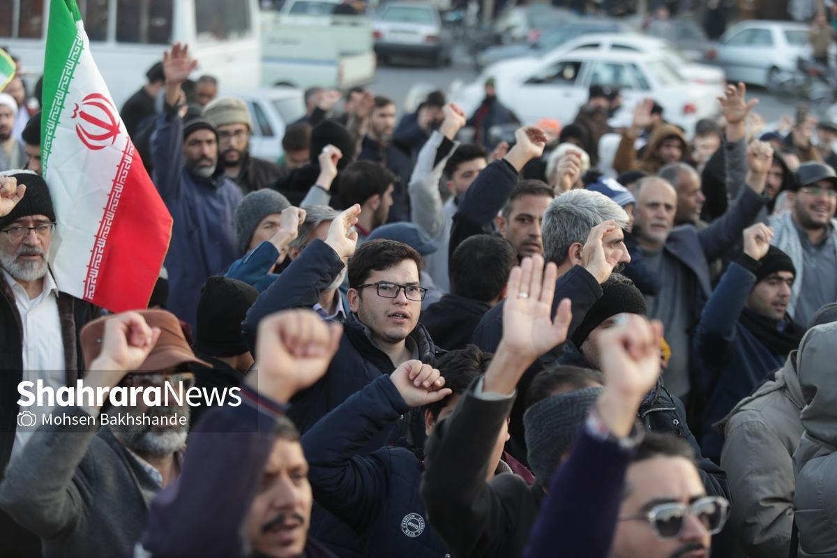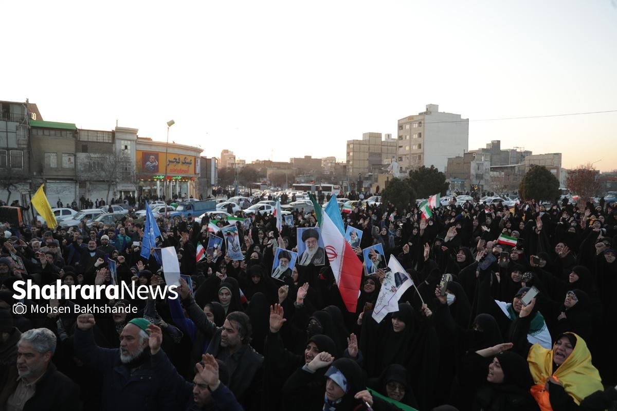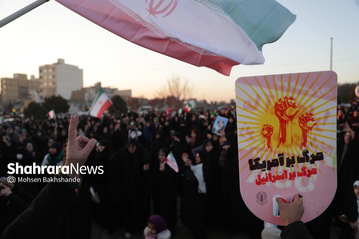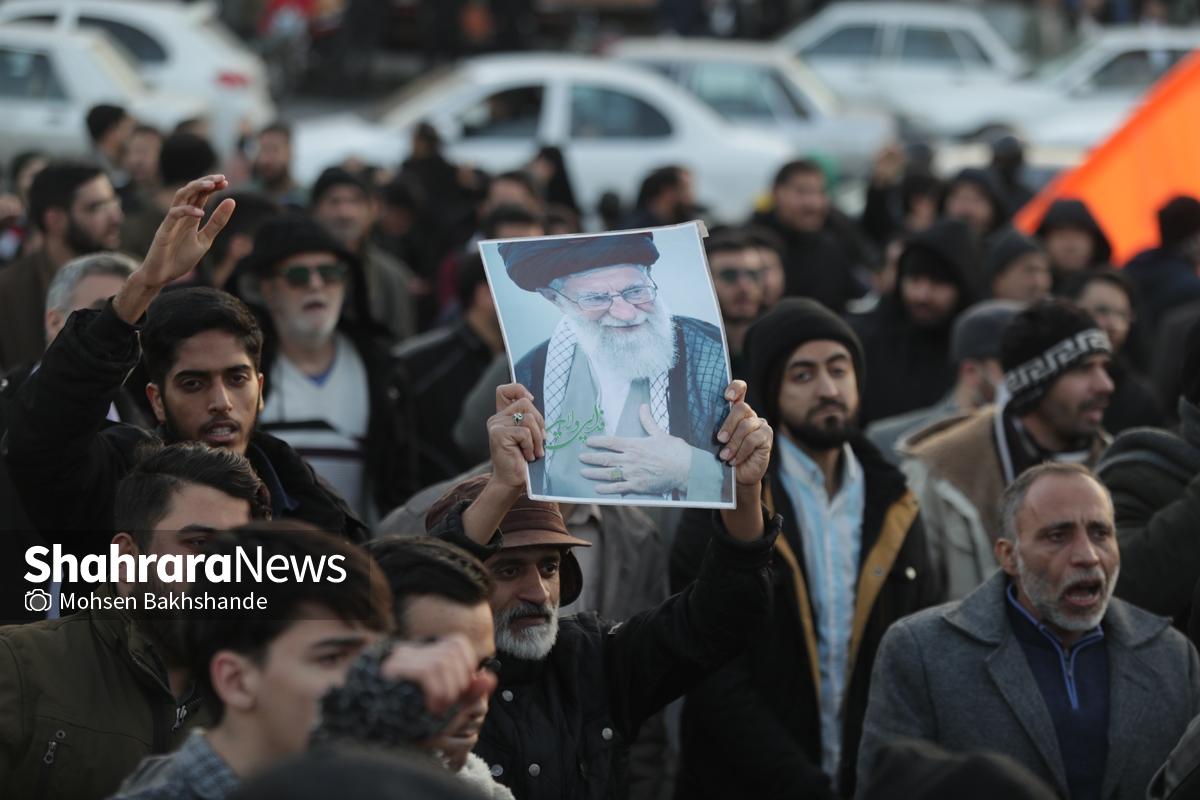 به دنبال توهین اغتشاشگران به پرچم سربلند ایران که نماد همبستگی و دل دادگی به وطن است، مردم شریف مشهد امروز پنجشنبه ۱۸ دیماه ۱۴۰۴ ساعت ۱۵ با شعار «این پرچم هرگز به زمین نخواهد افتاد» تجمع کردند این مراسم در میدان فجر مشهد (مقابل پرچم ایران اسلامی) برگزار شد.