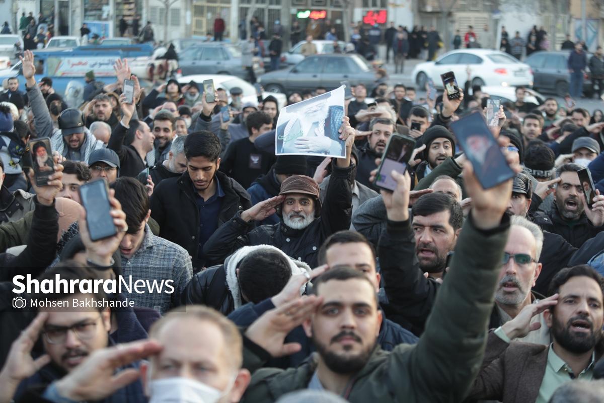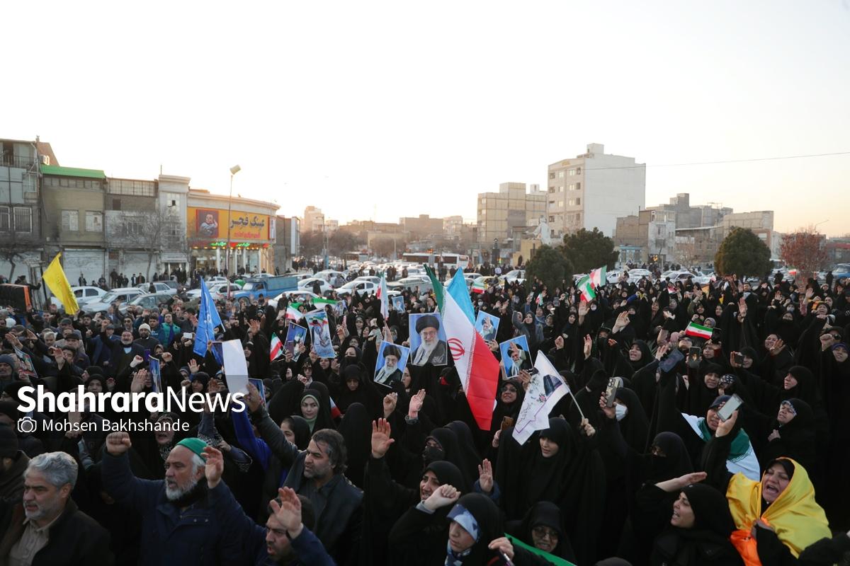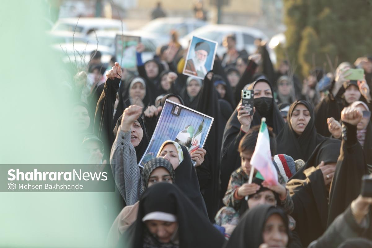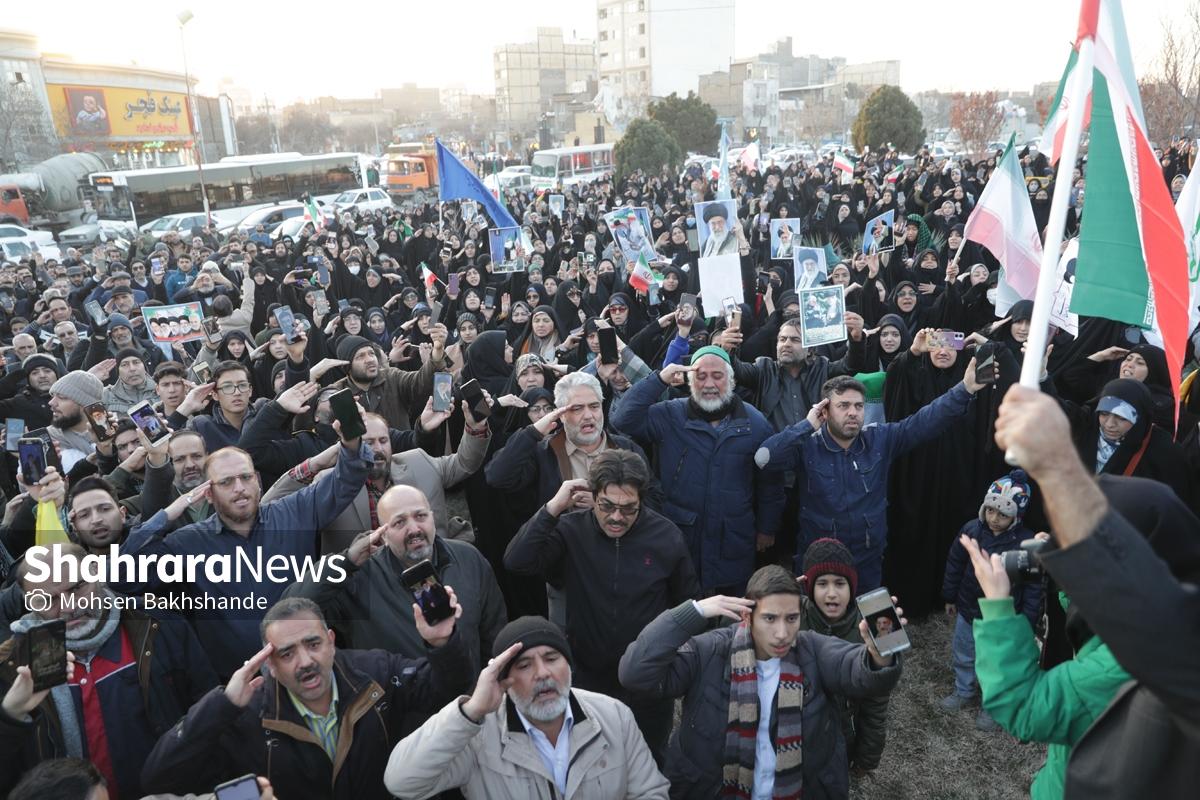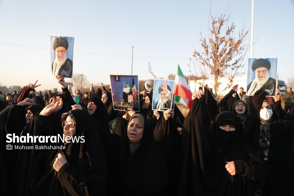 به دنبال توهین اغتشاشگران به پرچم سربلند ایران که نماد همبستگی و دل دادگی به وطن است، مردم شریف مشهد امروز پنجشنبه ۱۸ دیماه ۱۴۰۴ ساعت ۱۵ با شعار «این پرچم هرگز به زمین نخواهد افتاد» تجمع کردند این مراسم در میدان فجر مشهد (مقابل پرچم ایران اسلامی) برگزار شد.