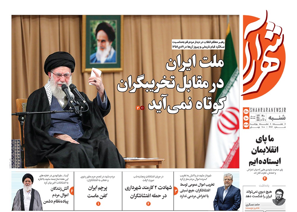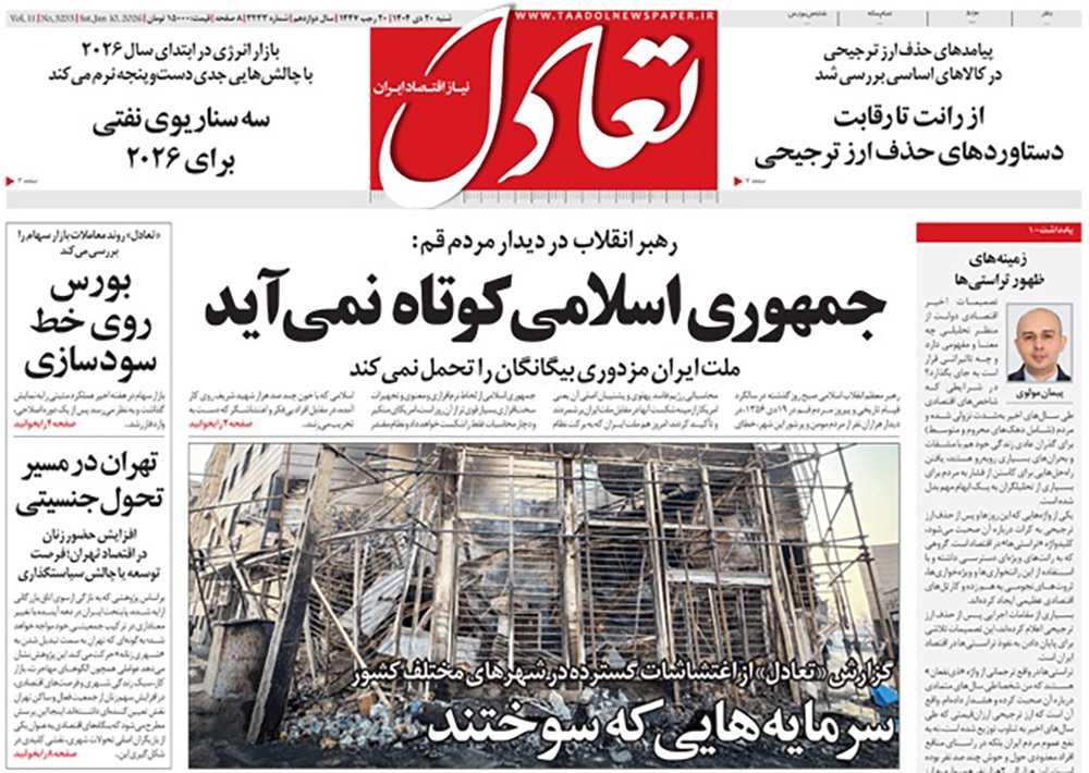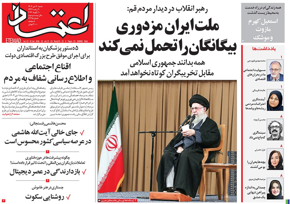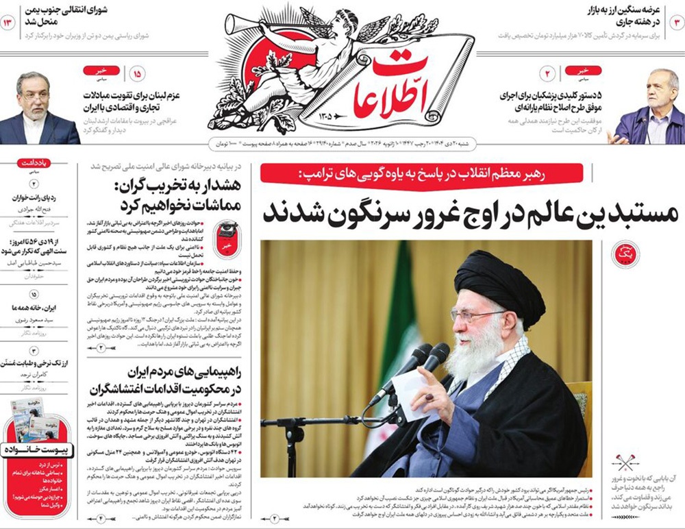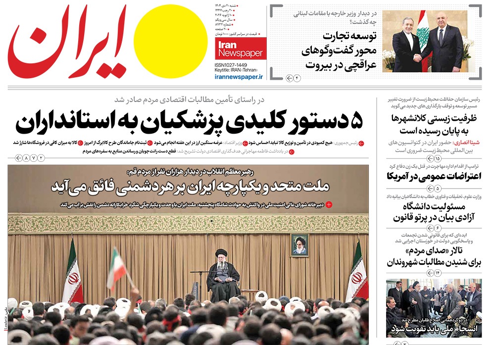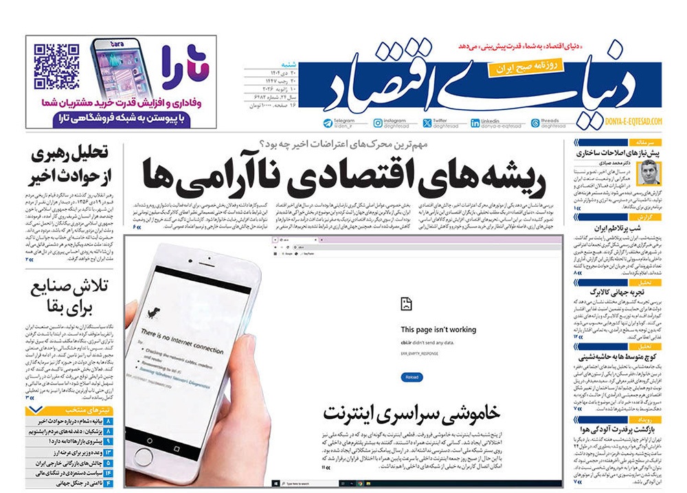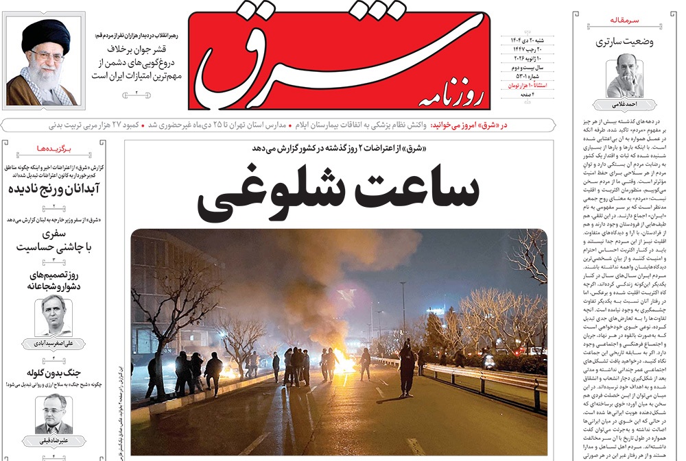 صفحه نخست روزنامه‌های کشور - شنبه ۲۰ دی ۱۴۰۴