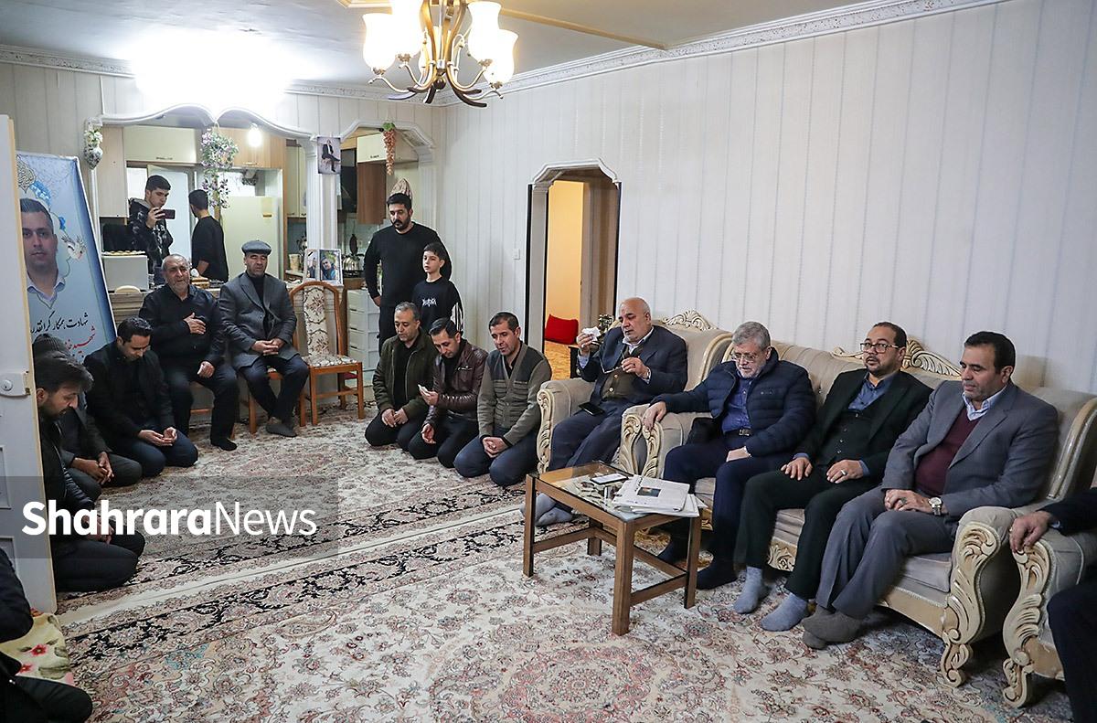 محمدرضا قلندر شریف،شهردار مشهد با خانواده شهید حسین غلامی که پنجشنبه شب در حمله تروریست های مسلح به یکی از ساختمان های شهرداری، به ضرب گلوله به شهادت رسید، دیدار کرد.