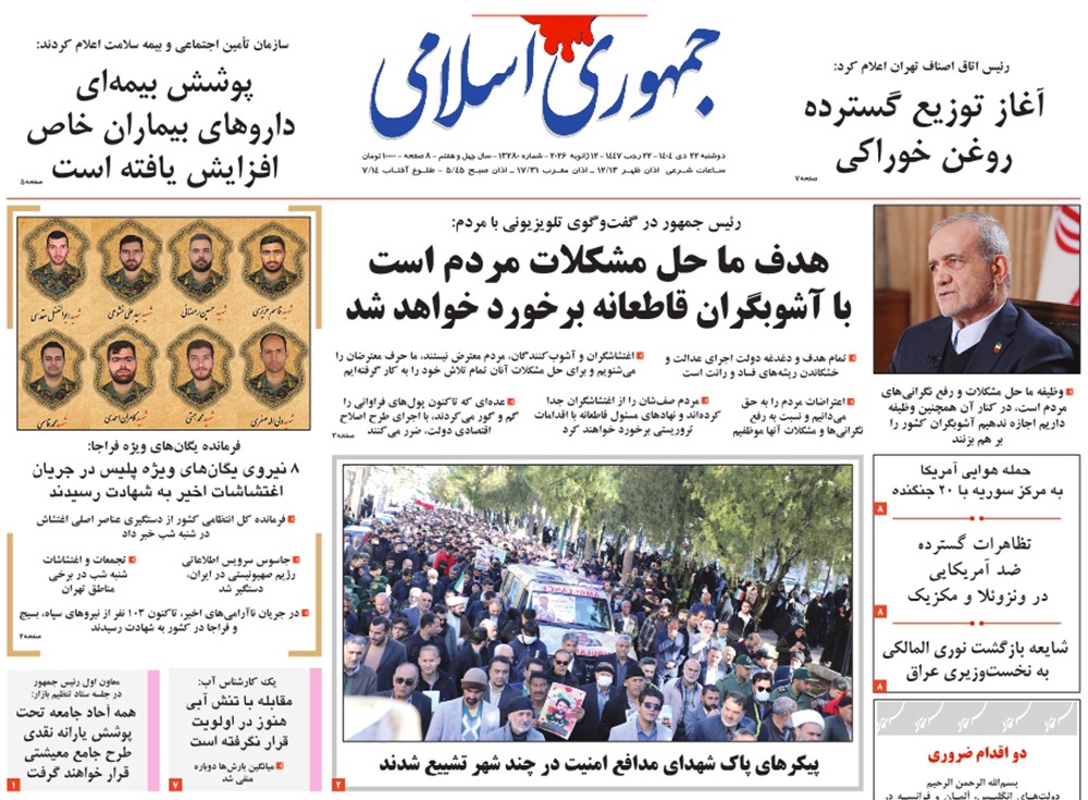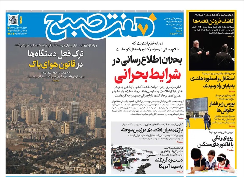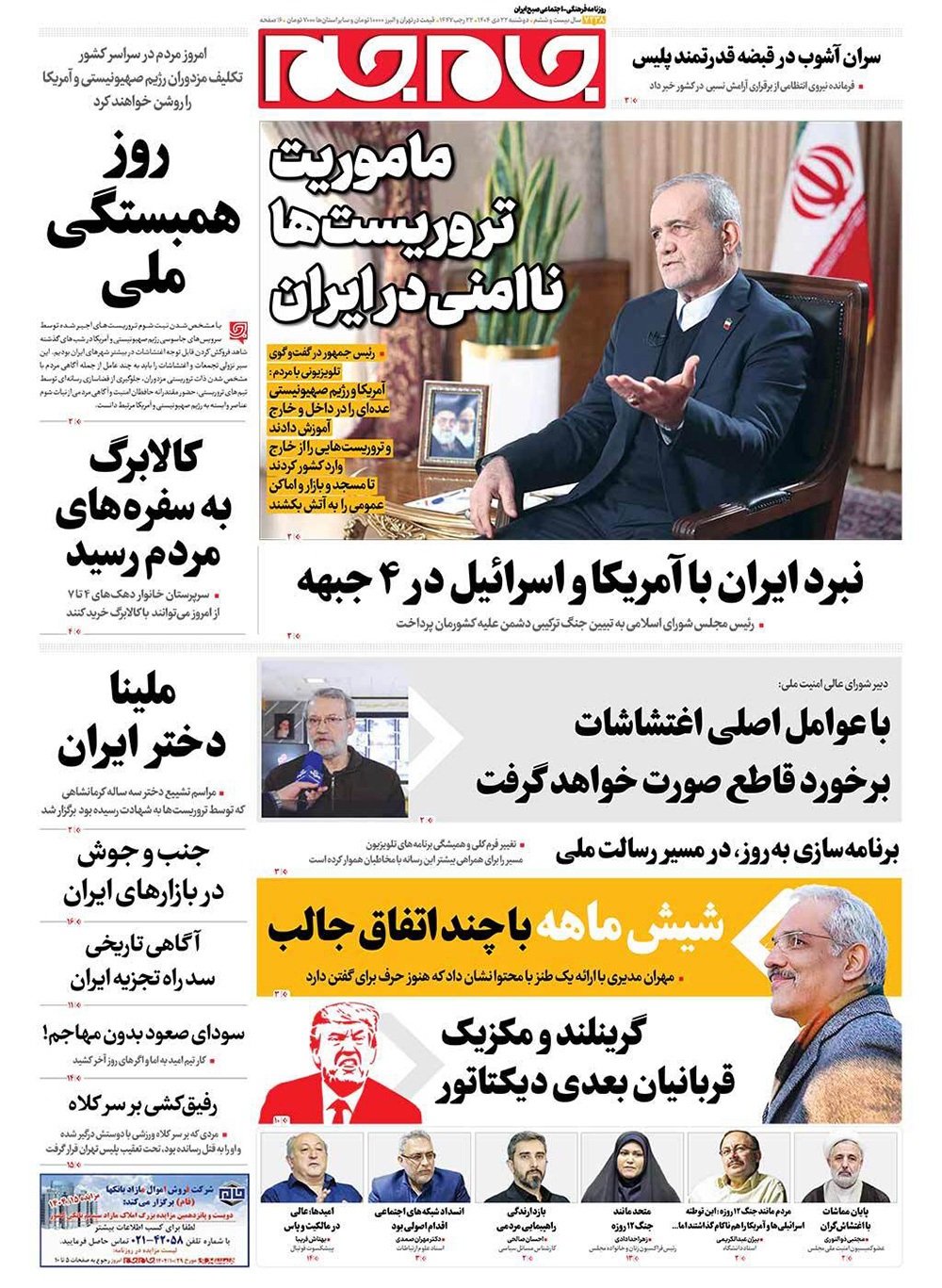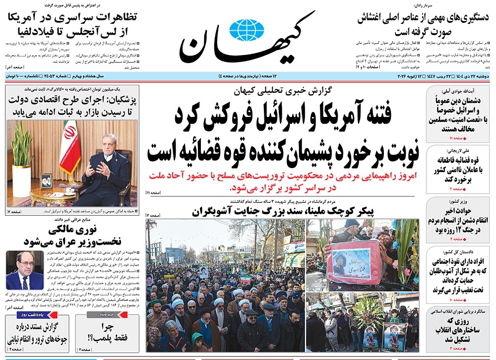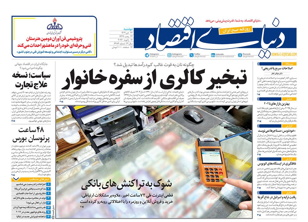 صفحه نخست روزنامه‌های کشور - دوشنبه ۲۲ دی ۱۴۰۴