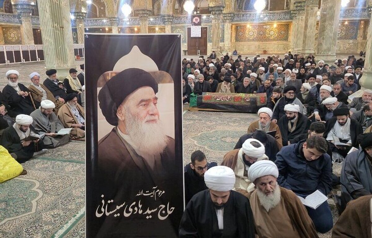 آیت الله سیدضیا حکیم از علمای نجف بر پیکر آیتالله «سیدهادی حسینی سیستانی» در صحن امام رضا (ع) حرم مطهر حضرت معصومه (س) اقامه نماز کرد.
