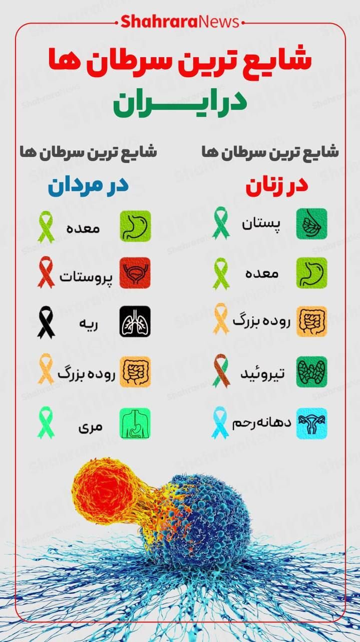در مردان، سرطانهای معده، سرطان پروستات و ریه بیشترین علت مرگومیر بوده و در زنان نیز سرطانهای پستان، معده و ریه بیشترین آمار مرگ ناشی از سرطان را به خود اختصاص دادهاند. این آمار نشاندهنده نیاز به اقدامات جدیتر در زمینه پیشگیری، تشخیص زودهنگام و درمان سرطانها در ایران است.