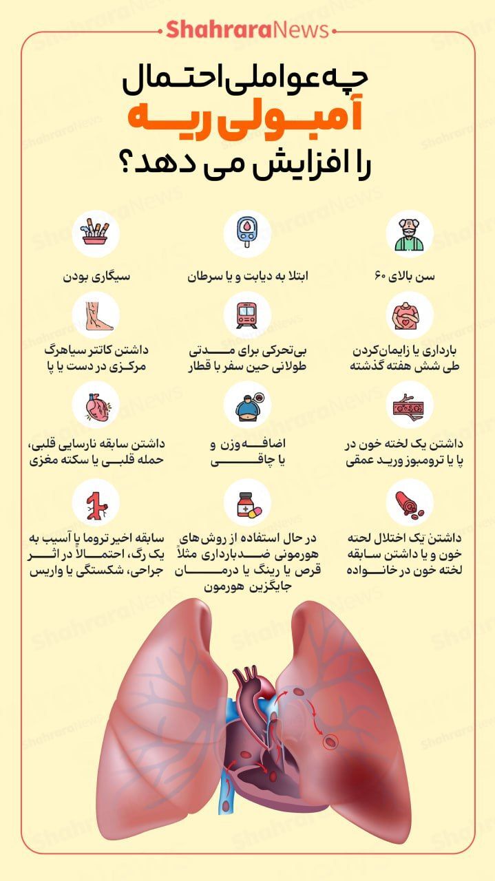 اینفوگرافی| چه عواملی احتمال آمبولی ریه را افزایش میدهد؟