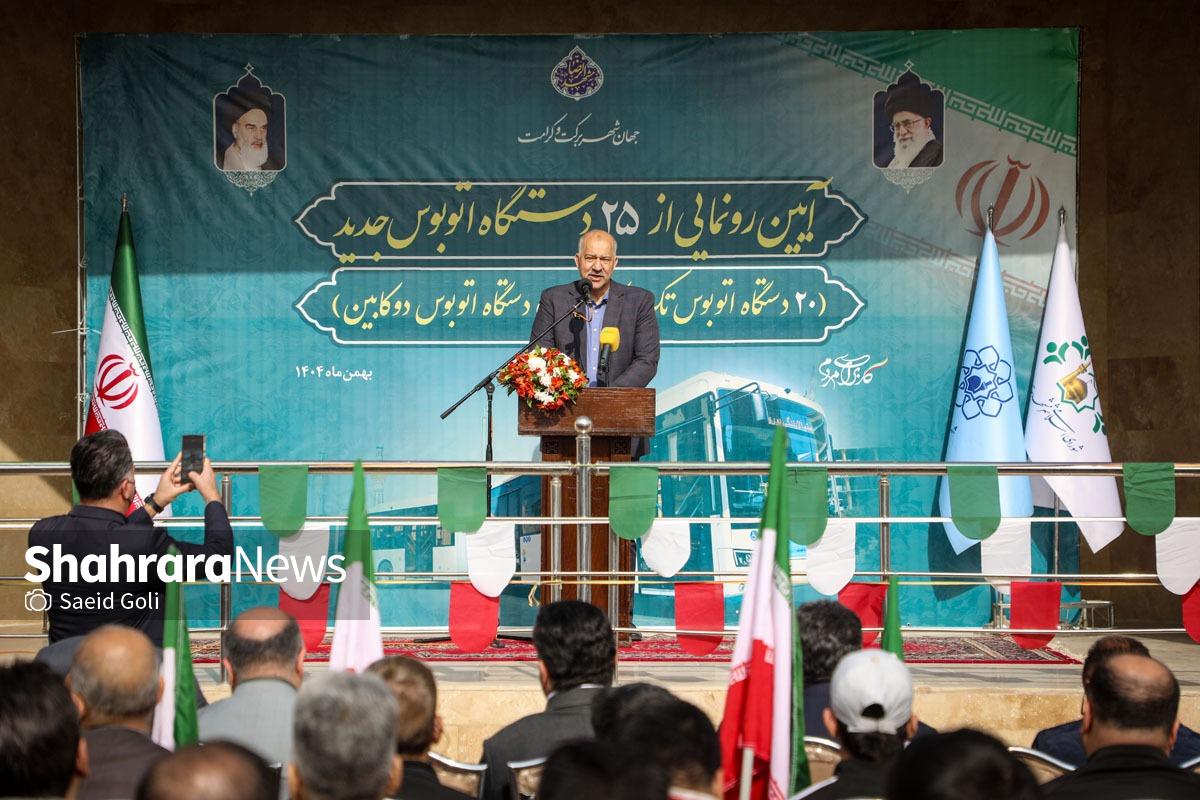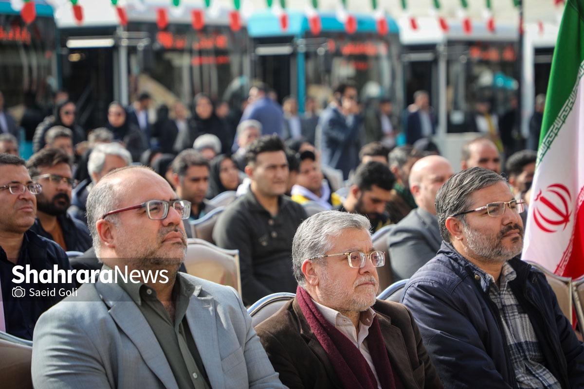 آیین رونمایی از ۲۵ دستگاه اتوبوس جدید (۲۰ دستگاه اتوبوس تککابین و ۵ دستگاه اتوبوس دوکابین) با حضور شهردار مشهد و مدیران شهری برگزار شد.