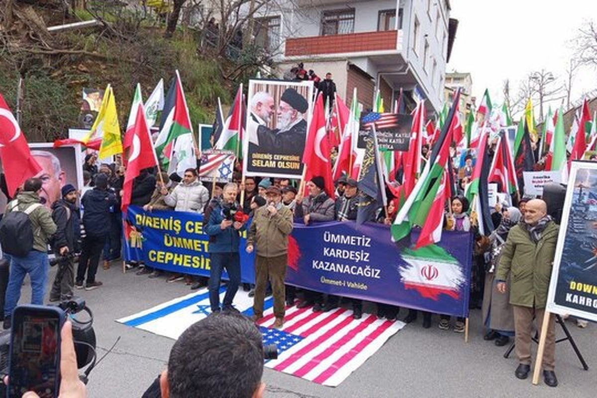 تجمع شهروندان ترکیه در مقابل کنسولگری آمریکا برای حمایت از ایران