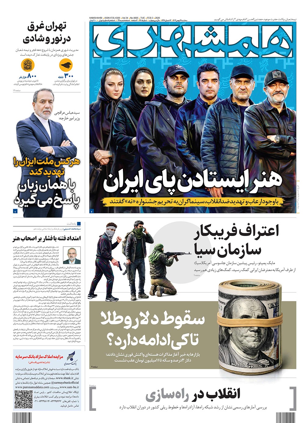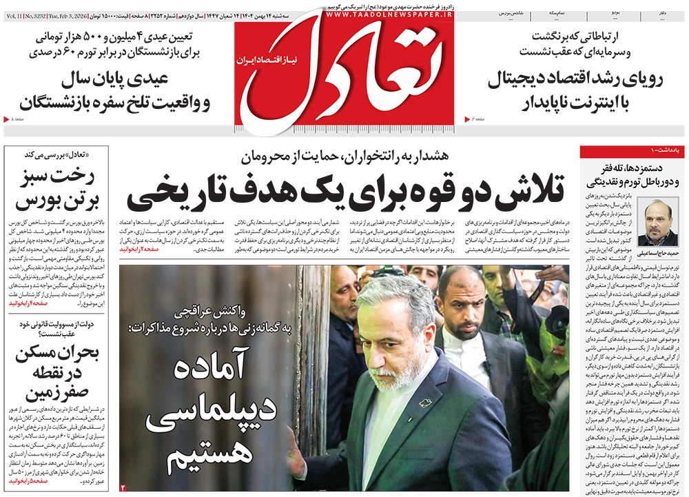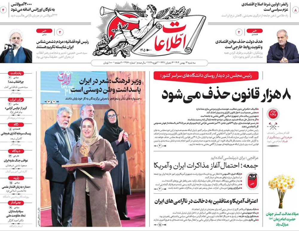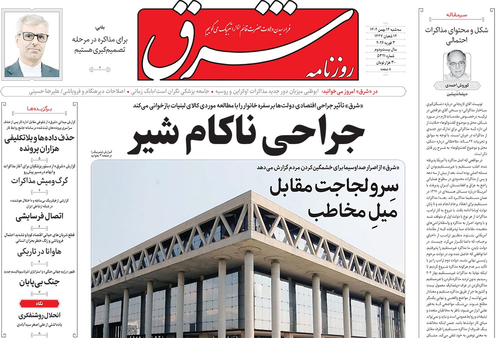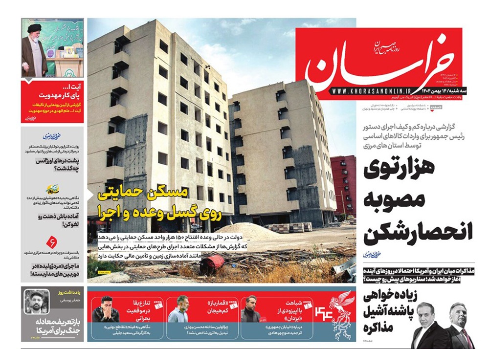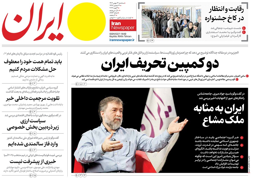 صفحه نخست روزنامه‌های کشور - سه‌شنبه ۱۴ بهمن ۱۴۰۴
