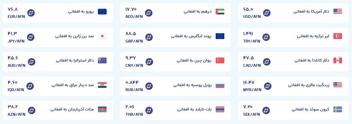 قیمت فعلی افغانی نسبت به هفته گذشته ۱.۸۴ درصد افزایش را نشان میدهد.