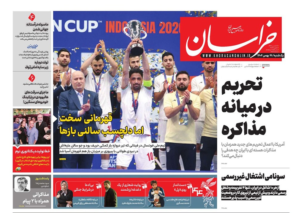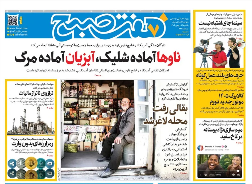صفحه نخست روزنامههای کشور - یکشنبه ۱۹ بهمن ۱۴۰۴