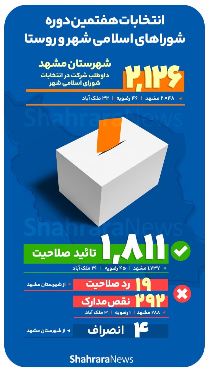 فرماندار مشهد خبر داد: تائید صلاحیت ۱۸۱۱ داوطلب انتخابات شوراهای شهر در شهرستان مشهد | تنها ۱۹ نفر رد صلاحیت شدند
