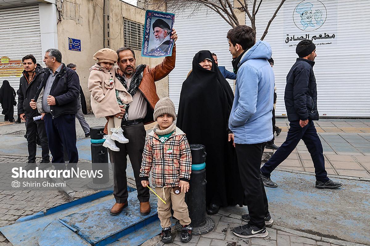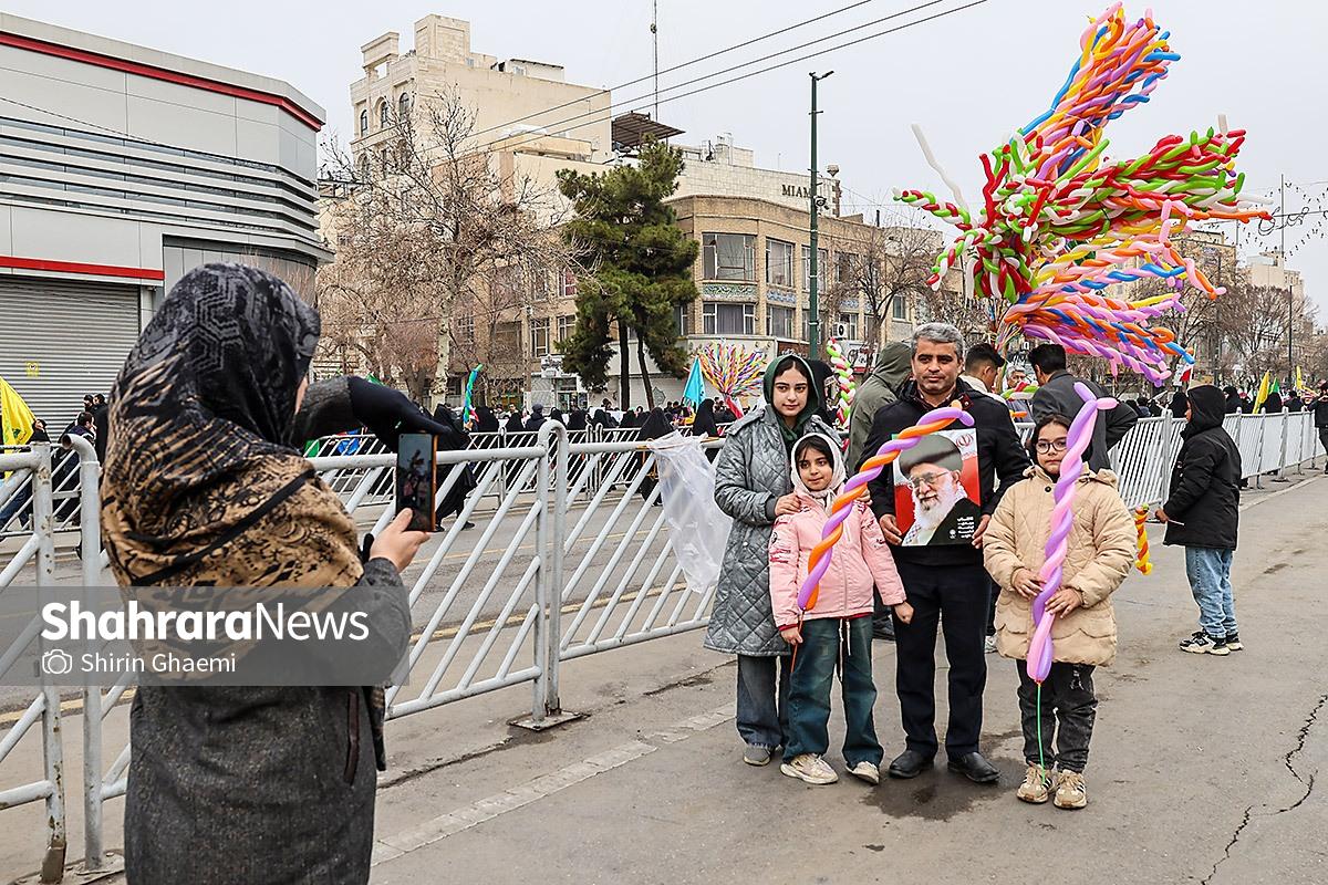 پررنگترین بخش این جشن حماسی، حضور خانوادههای مشهدی بود؛ ترکیب برندهای که همواره پشت سر انقلاب اسلامی حضور داشته و استمرار حمایتش، رمز ماندگاری انقلاب بوده است. خانوادههای مشهدی، مثل همیشه و دیدنیتر از سالهای گذشته، با انقلاب حضرت روح الله(ره) همراه بودند. این تصاویر گویا، نشان دهنده دریای وصف ناشدنی و ایران واقعی ماست، نه ساختههای استودیوهای هوش مصنوعی و رباتهای سرزمینهای اشغال.