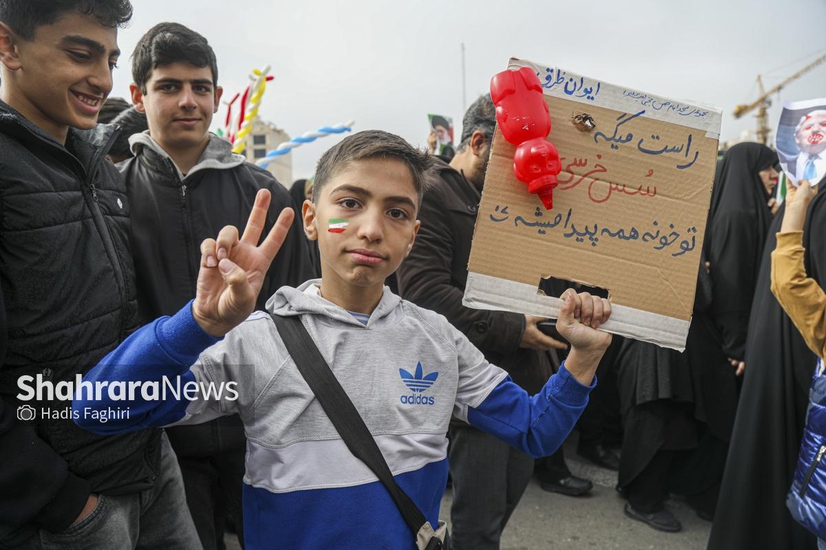 گزارش تصویری |نسل امروز، قلم به دست؛ راهپیمایی ۲۲ بهمن به روایت دستهای کوچک و آرزوهای بزرگ