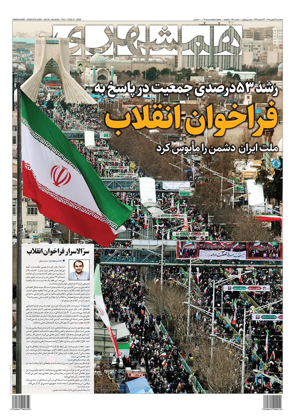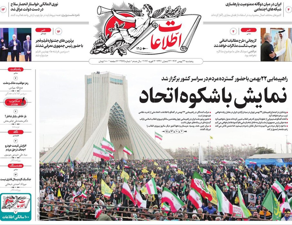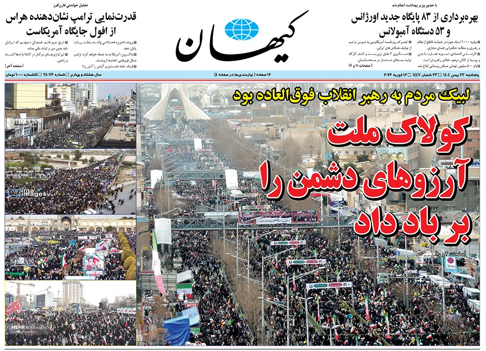 صفحه نخست روزنامه‌های کشور - پنجشنبه ۲۳ بهمن ۱۴۰۴