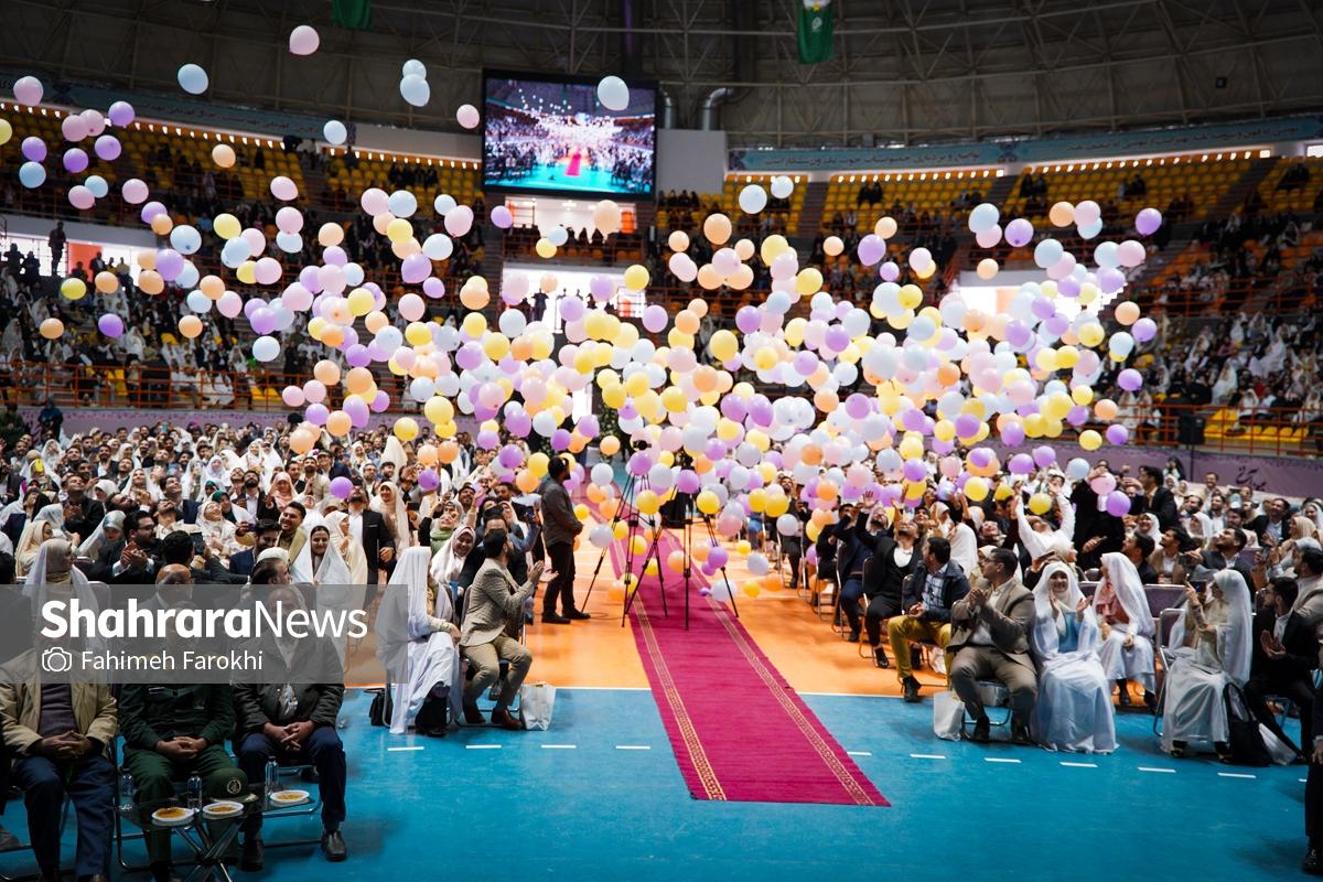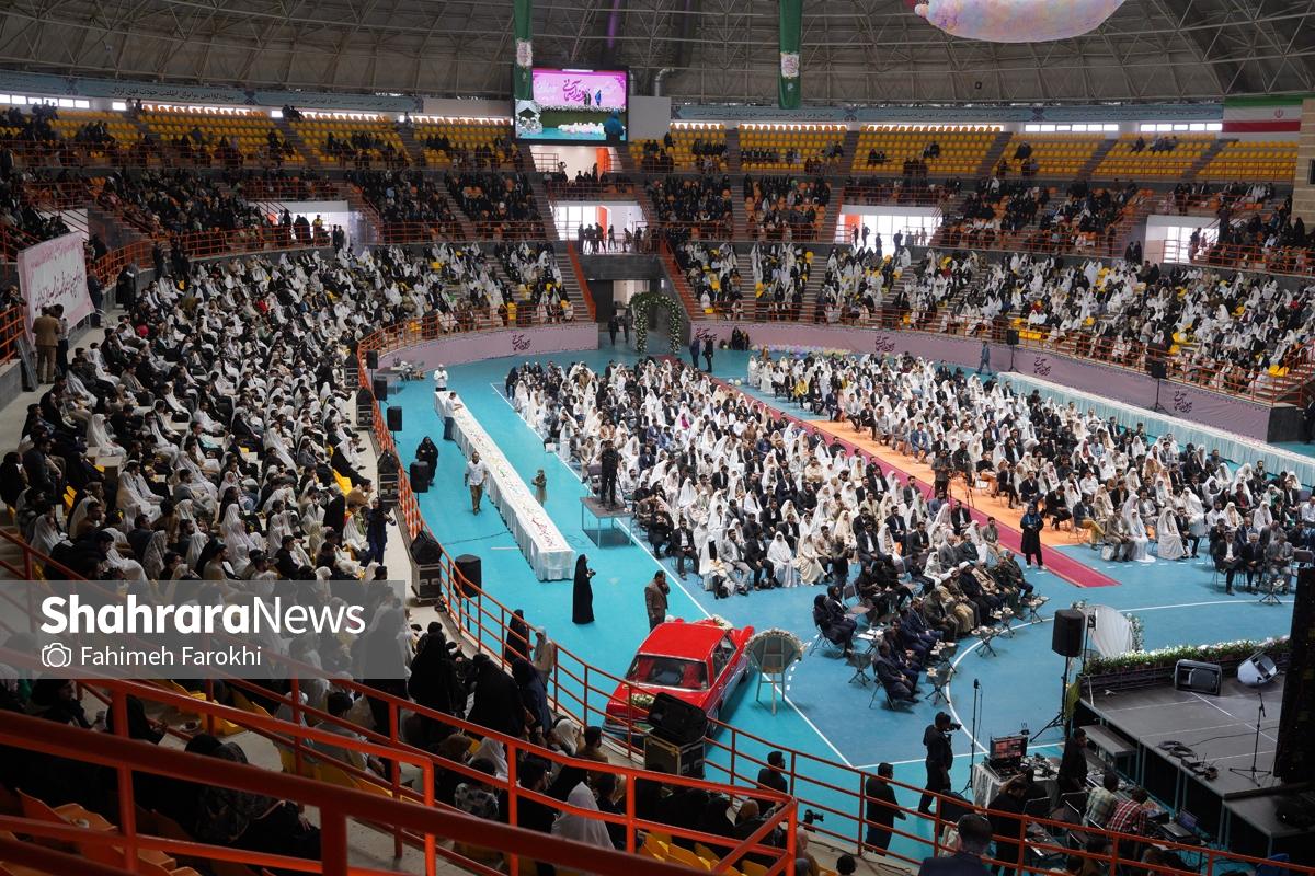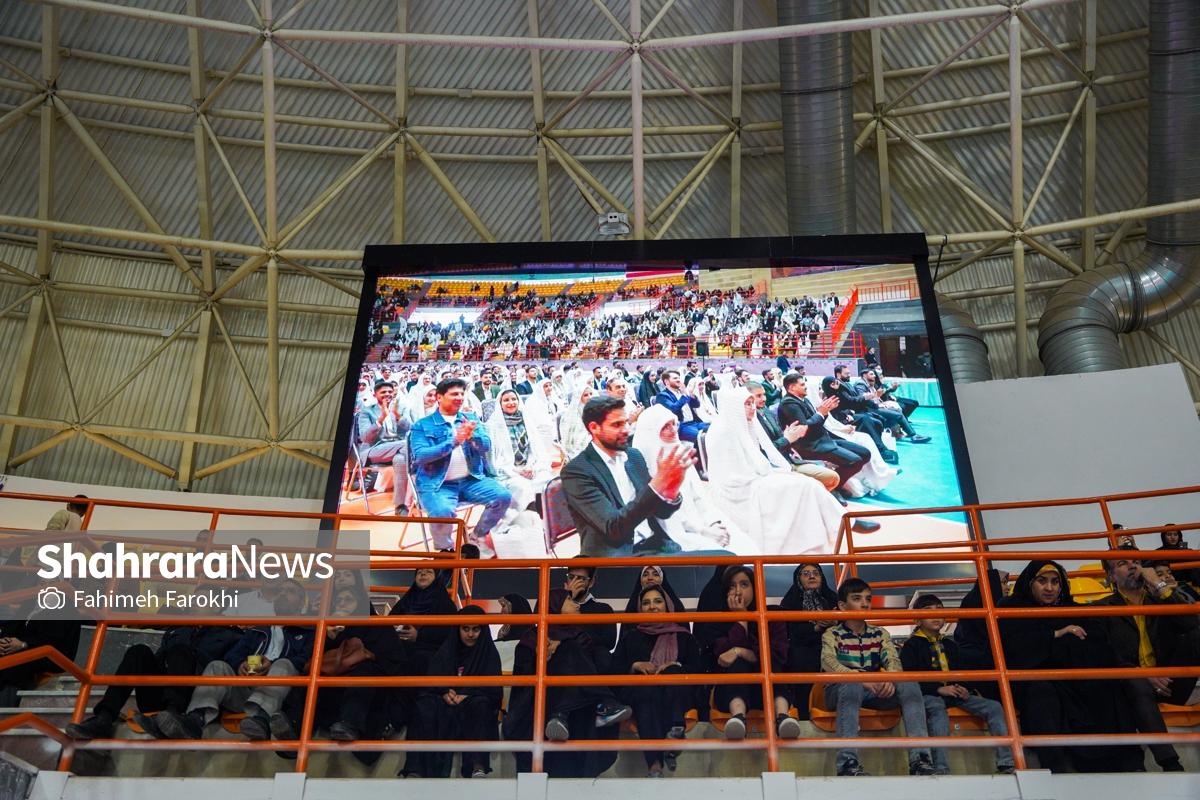جشن بزرگ ازدواج ۱۵۰۰ زوج دانشجوی خراسان رضوی در سالن شهید رییسی مجموعه ورزشی ثامن الائمه مشهد برگزار شد.