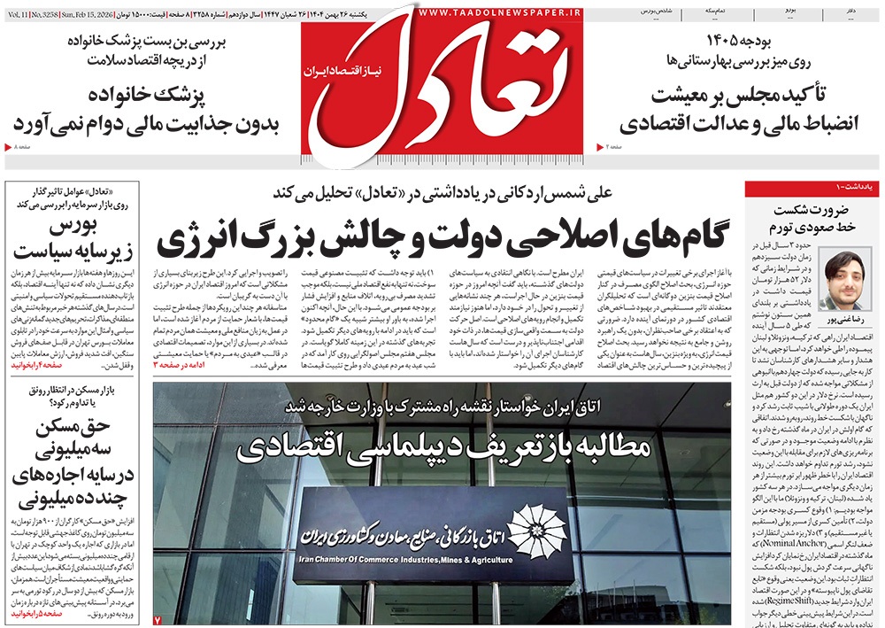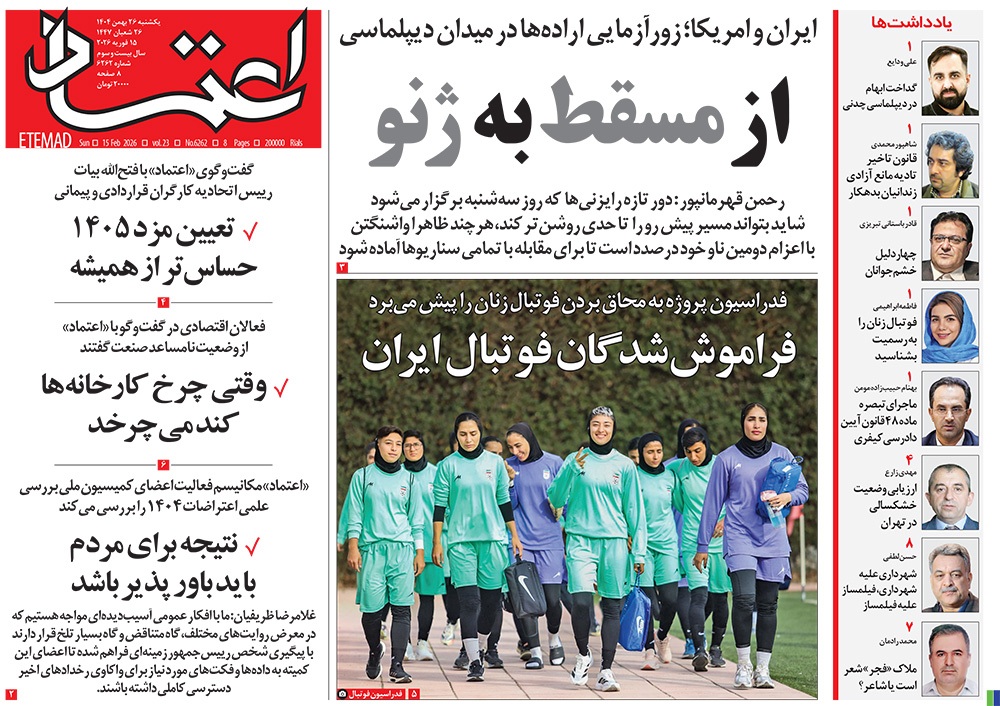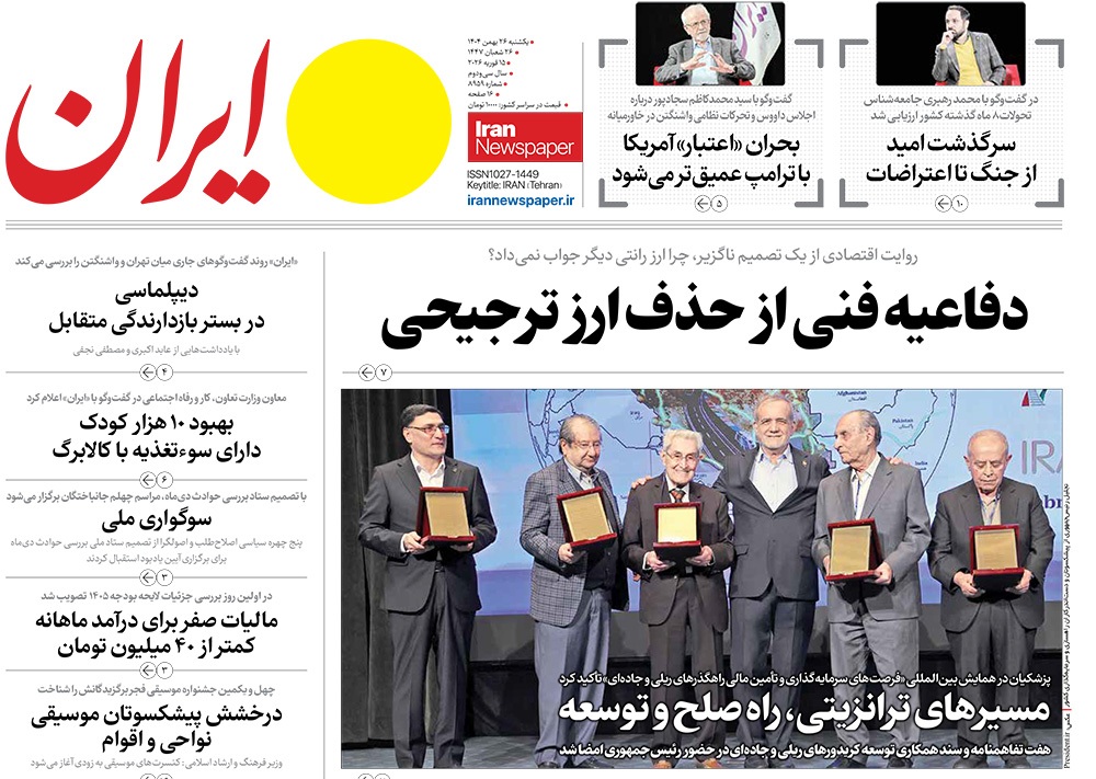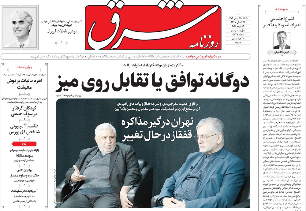 صفحه نخست روزنامههای کشور - یکشنبه ۲۶ بهمن ۱۴۰۴