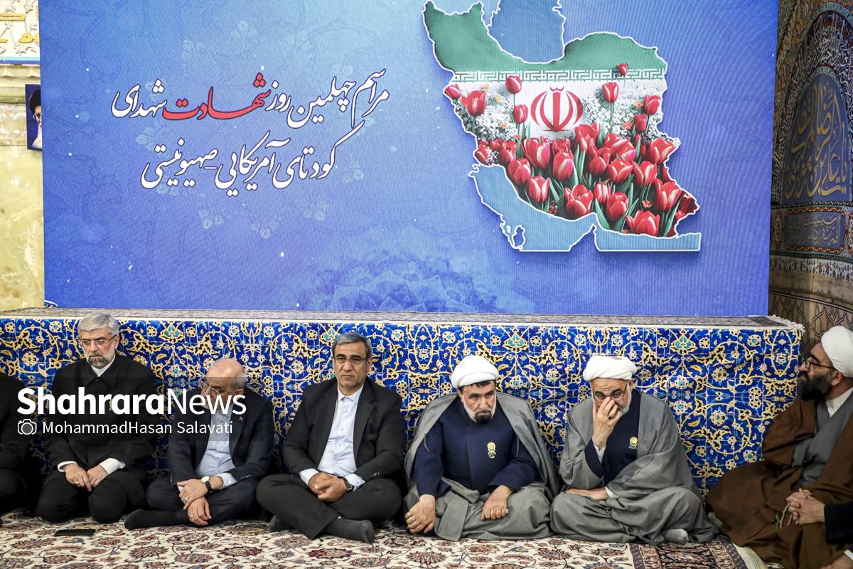 آیین بزرگداشت چهلم شهدای فتنه آمریکایی و صهیونیستی با عنوان «شهدای مظلوم وطن»، عصر امروز با حضور خانواده‌های معظم شهدا، مسعود پزشکیان ریاست جمهور و جمعی از مسئولان استانی، مدیران شهری، فرماندهان رده‌های مختلف نظامی و انتظامی، زائران و مجاوران در حرم مطهر رضوی برگزار شد.