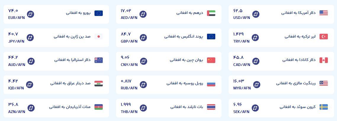 قیمت فعلی افغانی نسبت به هفته گذشته ۲.۳۸ درصد افزایش را نشان میدهد.