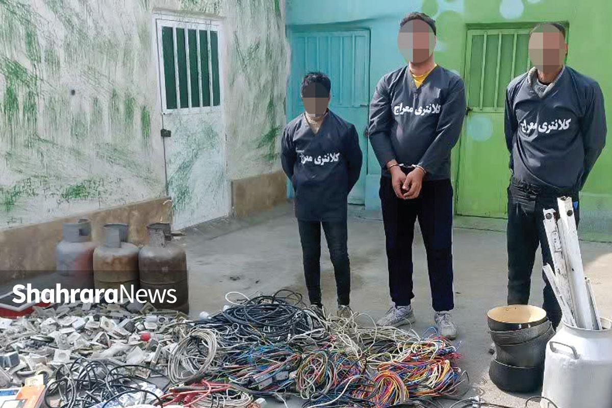با ورود مال خر به محل، بلافاصله این فرد شناسایی و دستگیر شد. پس از ورود مأموران به این ضایعاتی، آنها برای اینکه اتفاق دیگری نیفتد در را پشت سر خودشان بستند. در بررسی این انبار چهارصد متر سیم و کابل نو و دست دوم، سیصد عدد کلید و پریز، تعدادی کنتور آب سرقتی، آچار آلات و... به همراه مقدار زیادی کابلهای سوخته به منظور خارج کردن سیمهای داخلی آن کشف شد. با دستور قضایی از اقلام کشف شده تصویربرداری و مستندسازی شد تا مأموران بتوانند با نشان دادن این تصاویر به مال باخته ها، مالکانشان را شناسایی کنند.