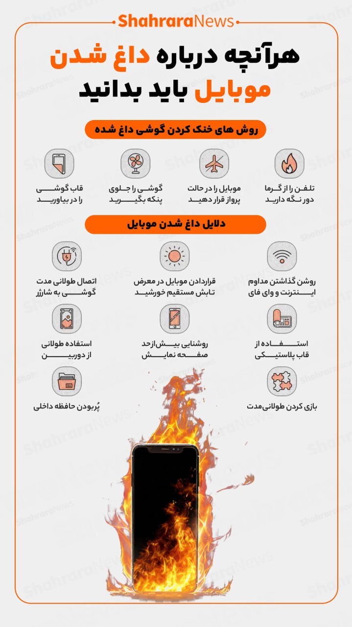 در این اینفوگرافی با دلایل داغ شدن موبایل و روش‌های خنک کردن گوشی داغ شده آشنا خواهید شد.