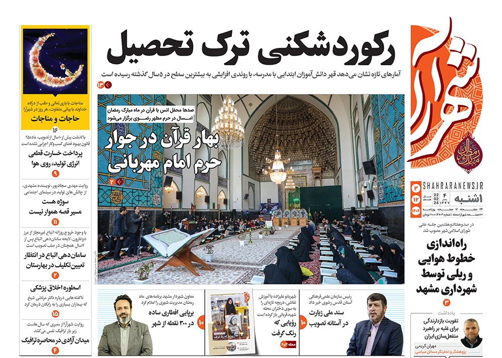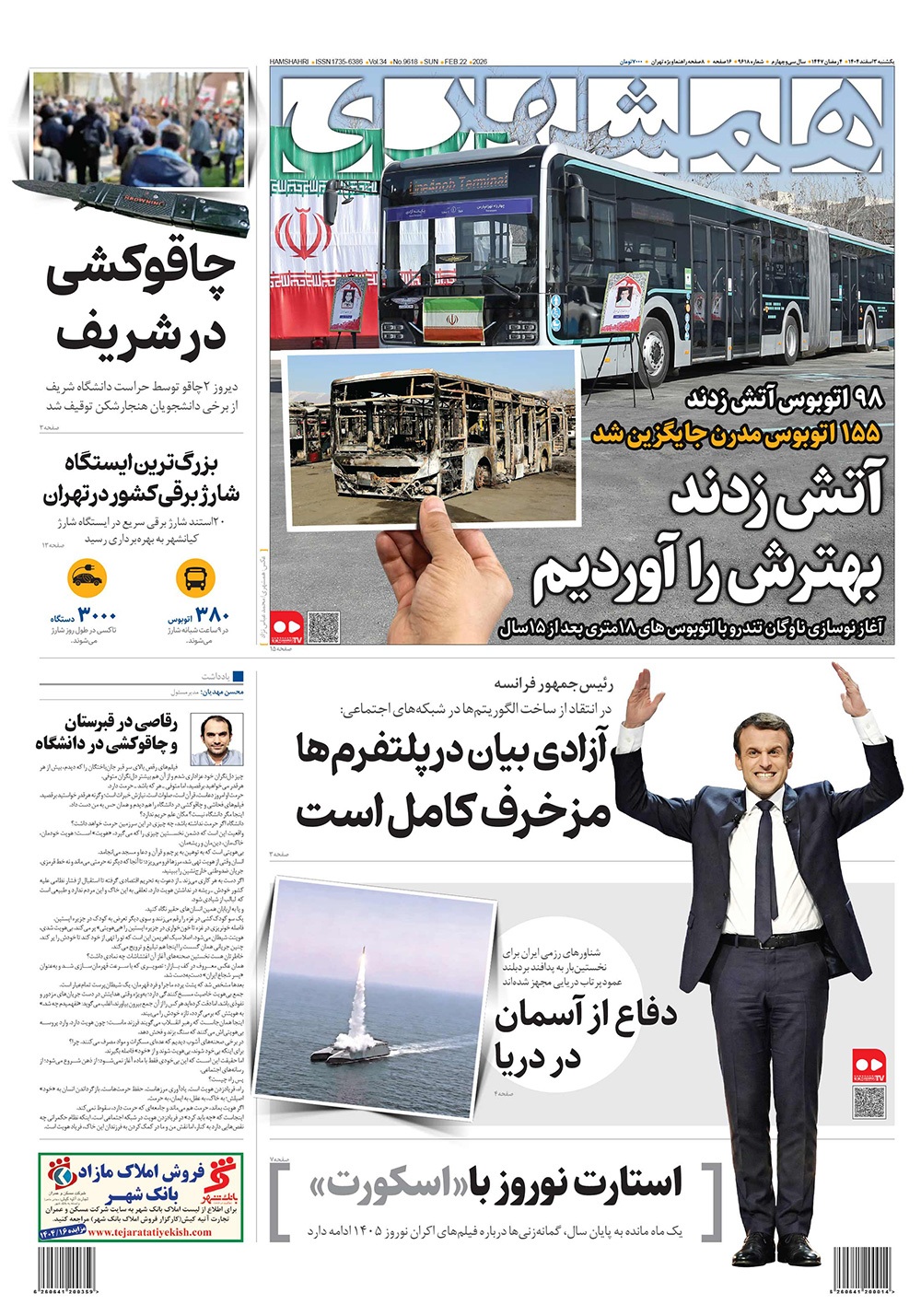 صفحه نخست روزنامه‌های کشور - یکشنبه ۳ اسفند ۱۴۰۴