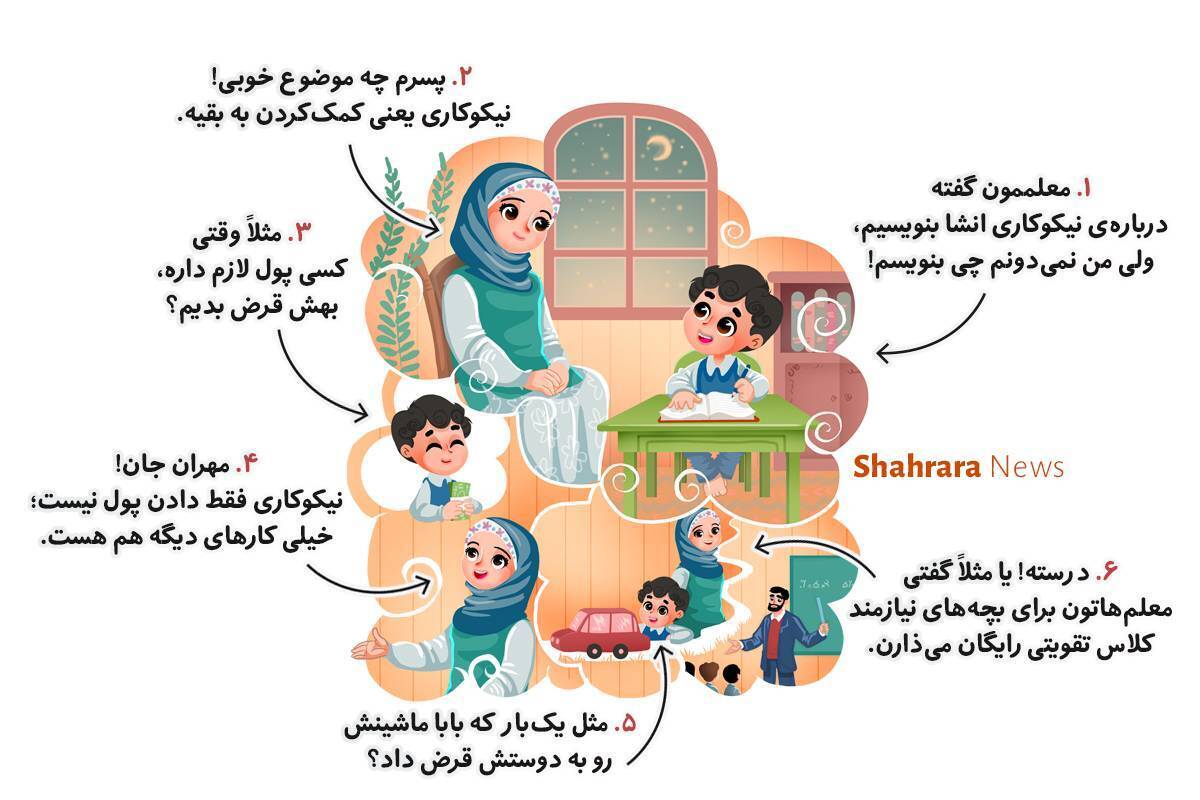در انشام همهی اینها رو مینویسم که بقیهی بچهها هم بدونن این کارها اسمش نیکوکاریه و انجام بدن.