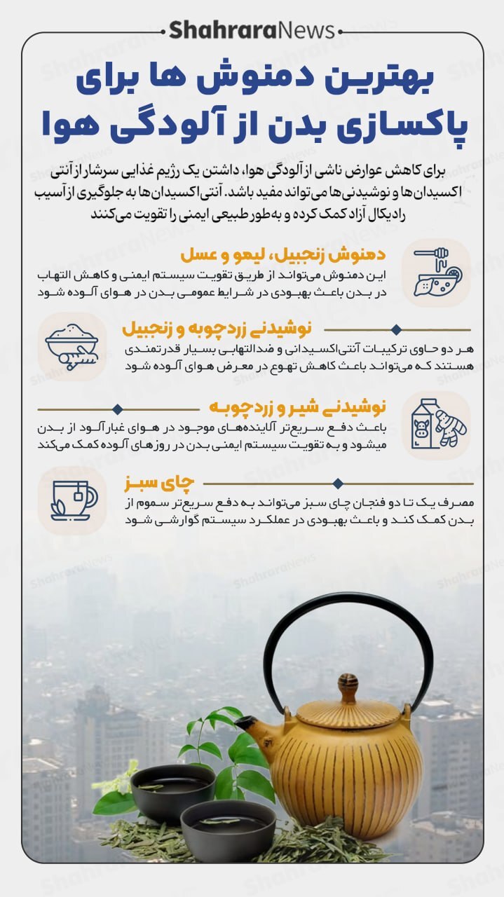 اینفوگرافی| بهترین دمنوشها برای پاکسازی بدن از آلودگی هوا
