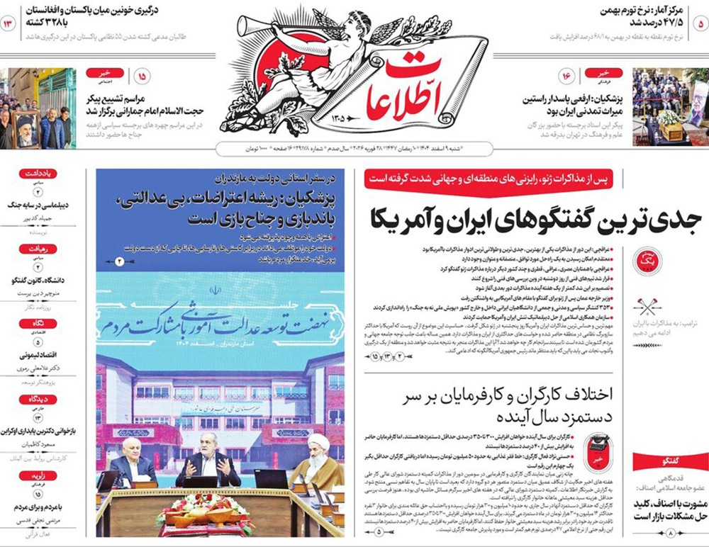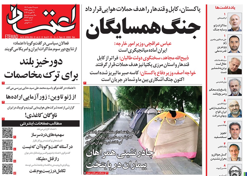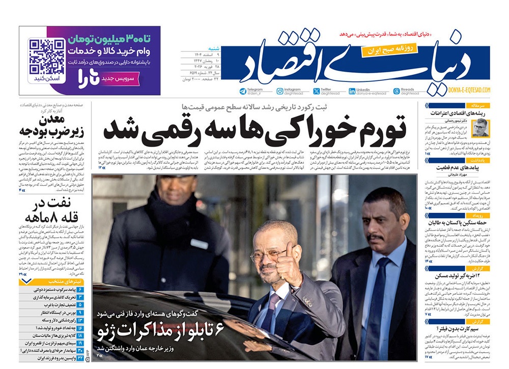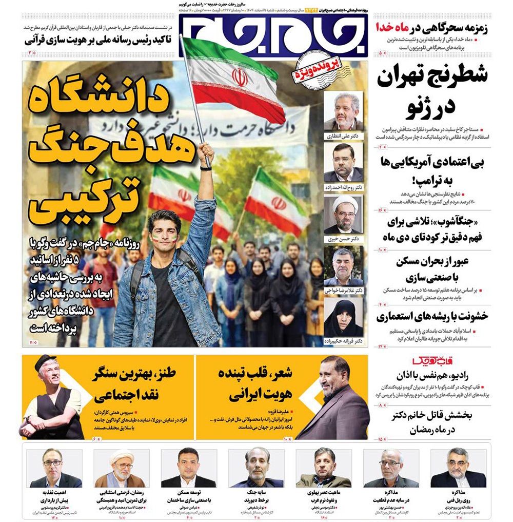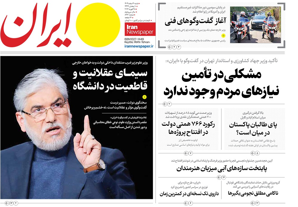 صفحه نخست روزنامه‌های کشور - شنبه ۹ اسفند ۱۴۰۴