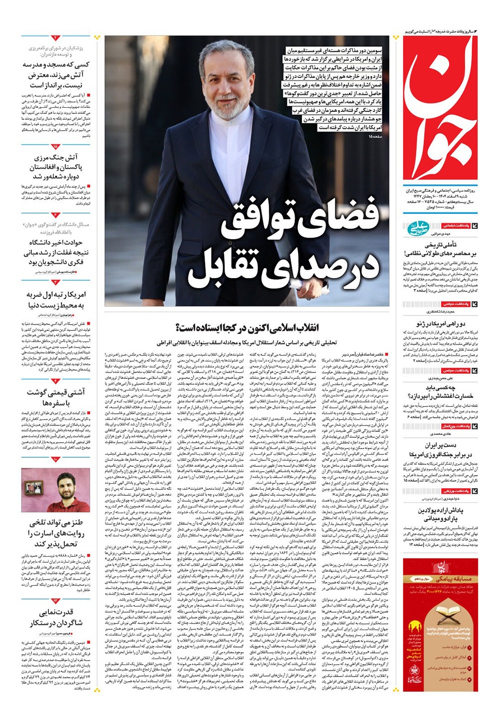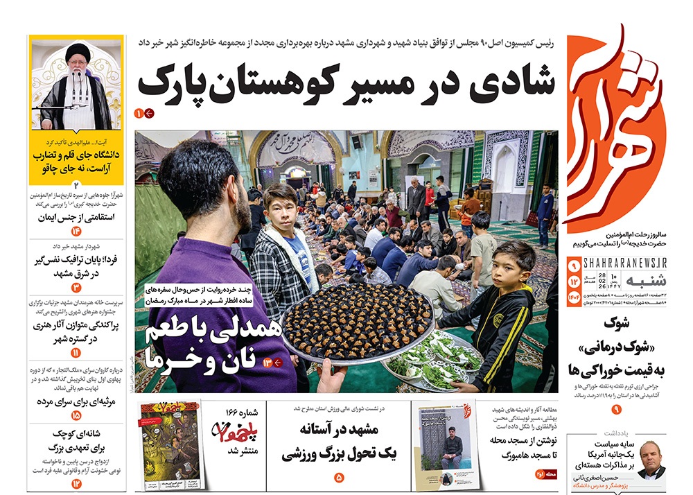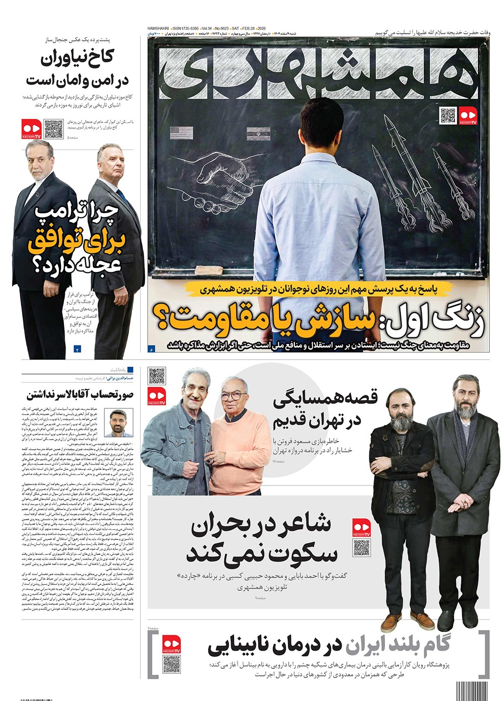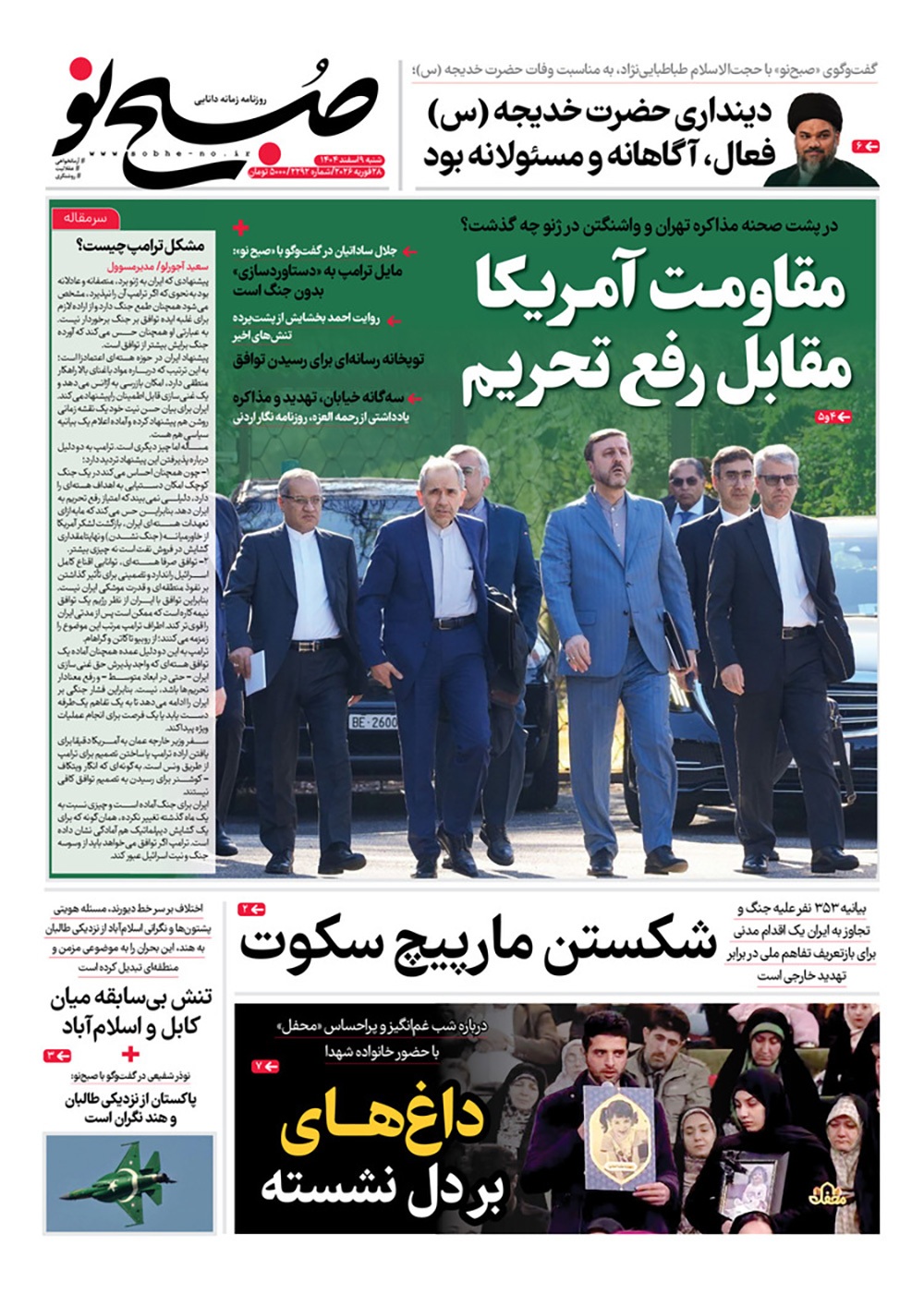 صفحه نخست روزنامه‌های کشور - شنبه ۹ اسفند ۱۴۰۴
