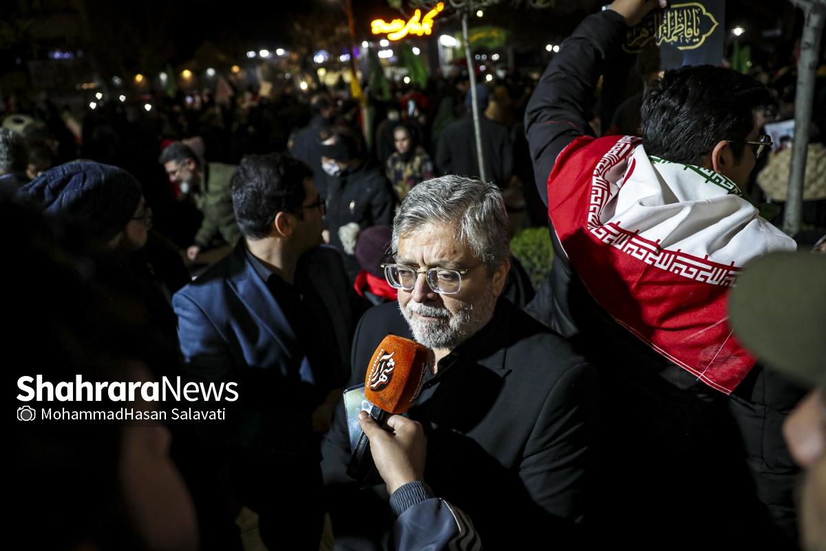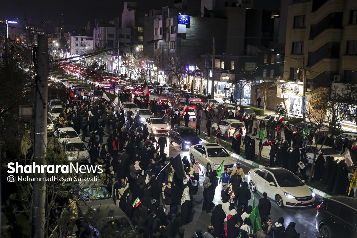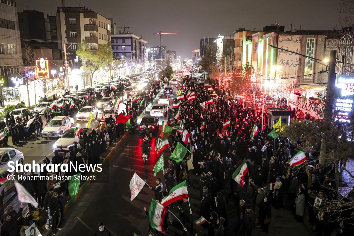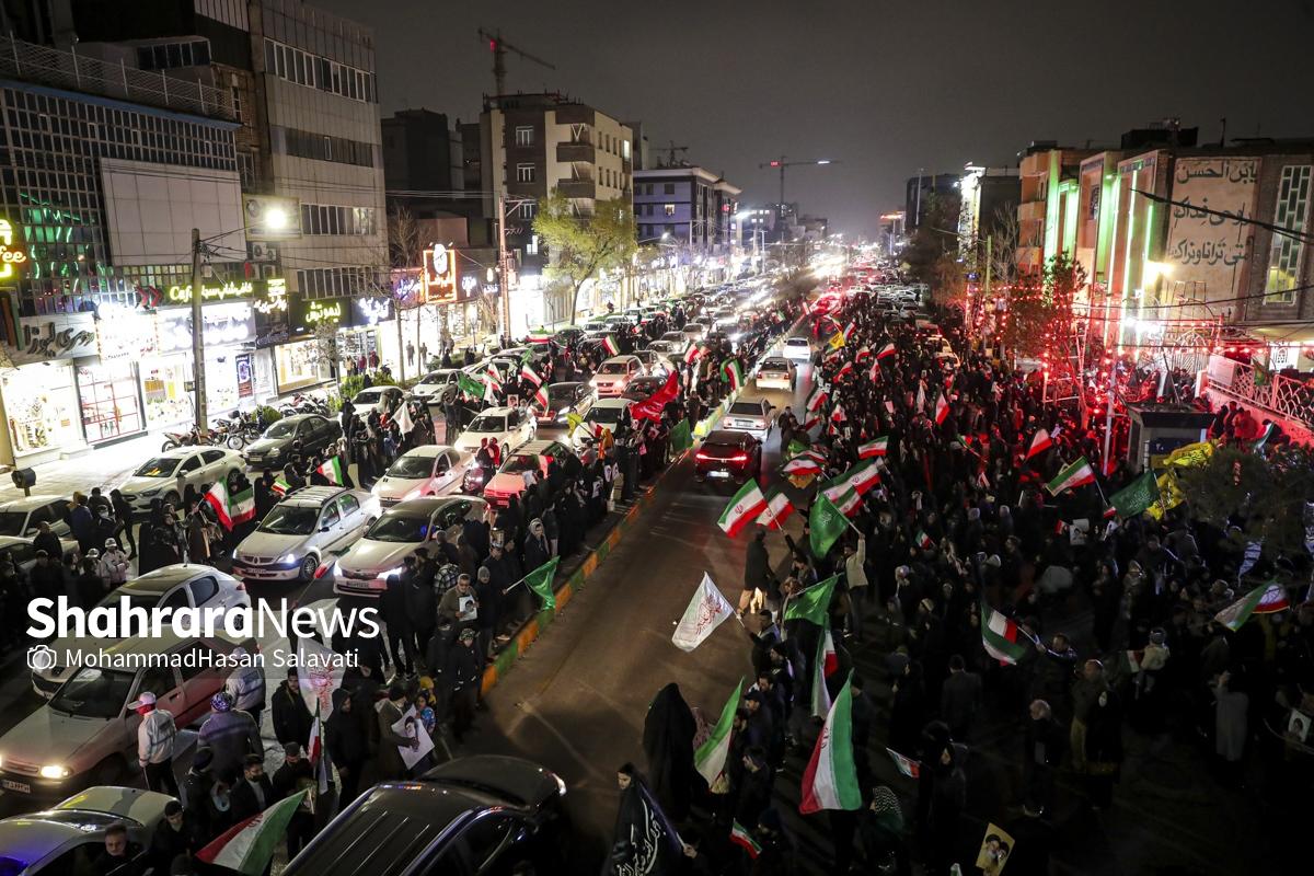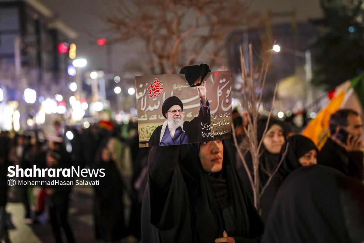 خیابان‌های مشهد این شب‌ها میزبان جمعیتی بی‌نظیر از مردمی است که عشق و وفاداری خود را به رهبر معظم و فقید انقلاب اسلامی ایران ابراز می‌دارند. مردم ولایتمدار مشهد این شب‌ها با حضور در خیابان‌ها و میادین اصلی این شهر در فراق رهبر شهیدشان عزاداری می‌کنند.