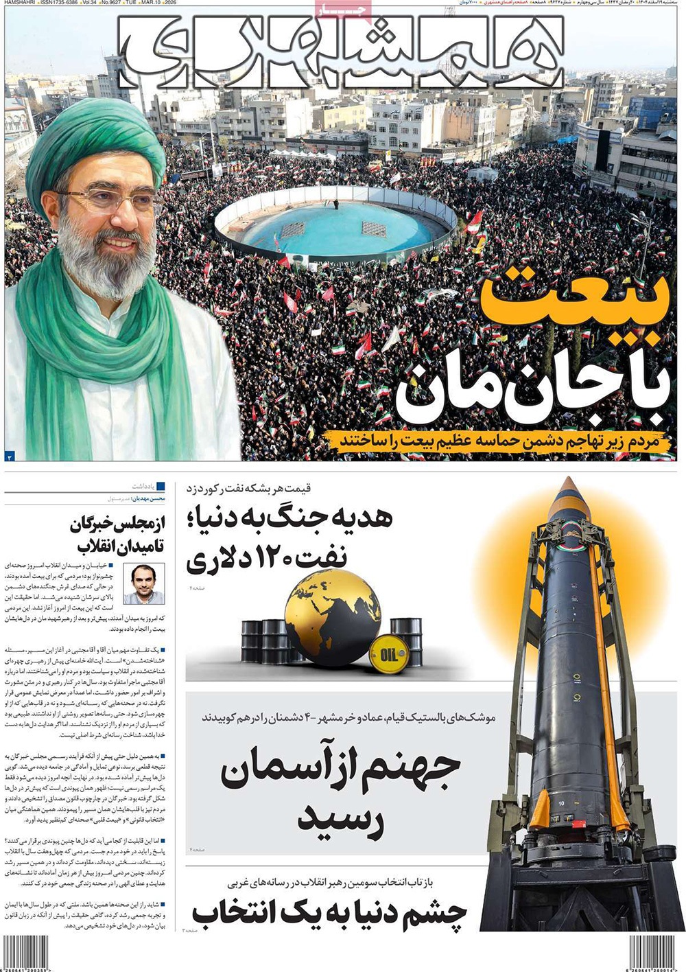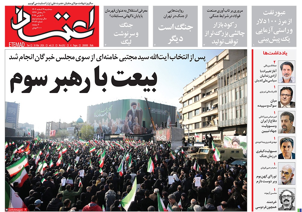 صفحه نخست روزنامه‌های کشور - سه‌شنبه ۱۹ اسفند ۱۴۰۴