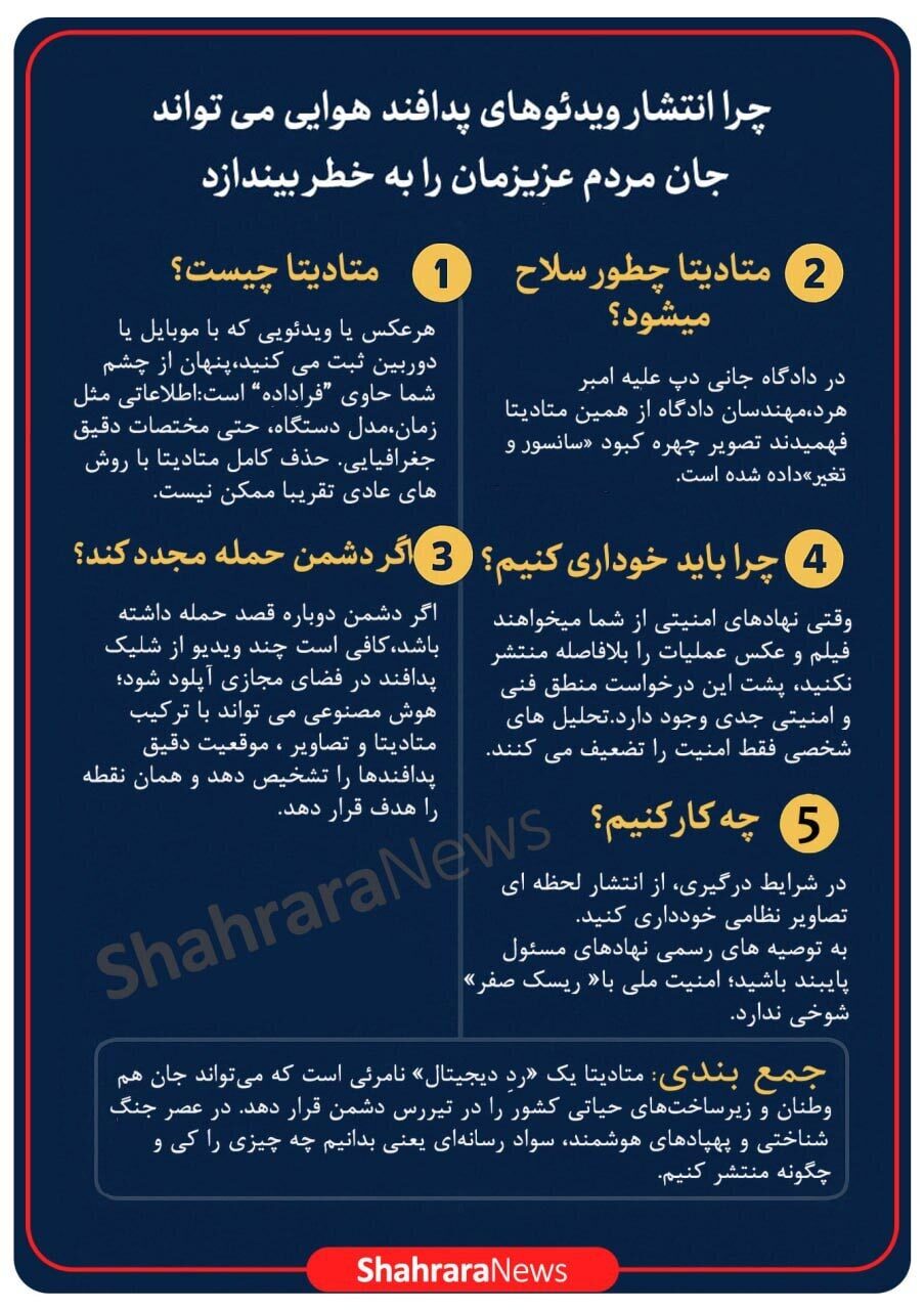 اینفوگرافی| چرا انتشار ویدئوهای پدافند هوایی می‌تواند جان مردم عزیزمان را به خطر بیندازد؟