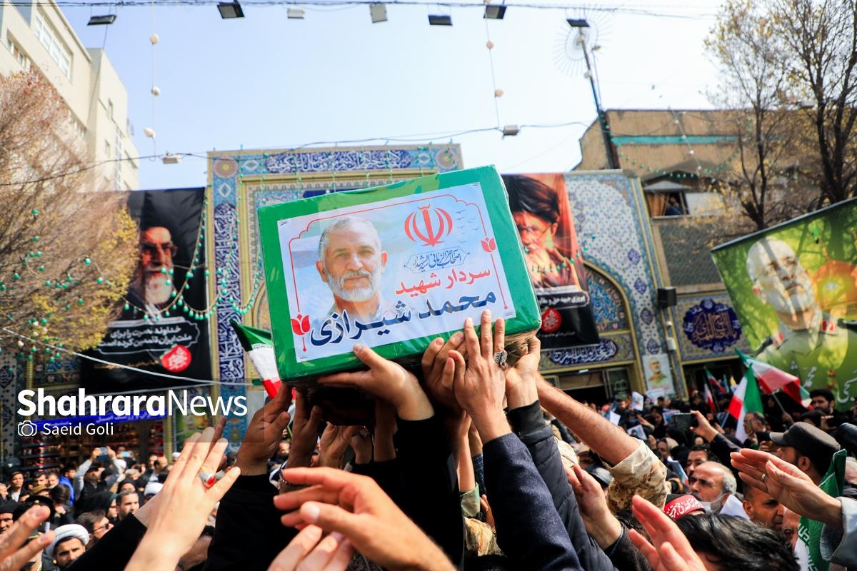 مراسم تشییع و تدفین پیکر مطهر «سرلشکر شهید محمد شیرازی»، رئیسدفتر نظامی رهبر شهید انقلاب اسلامی، امروز ۲۴ اسفندماه در مشهد برگزار شد.
