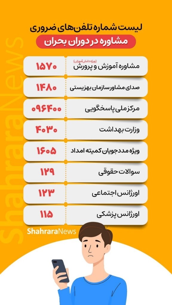 اینفوگرافی| لیست شماره تلفنهای ضروری مشاوره در دوران بحران