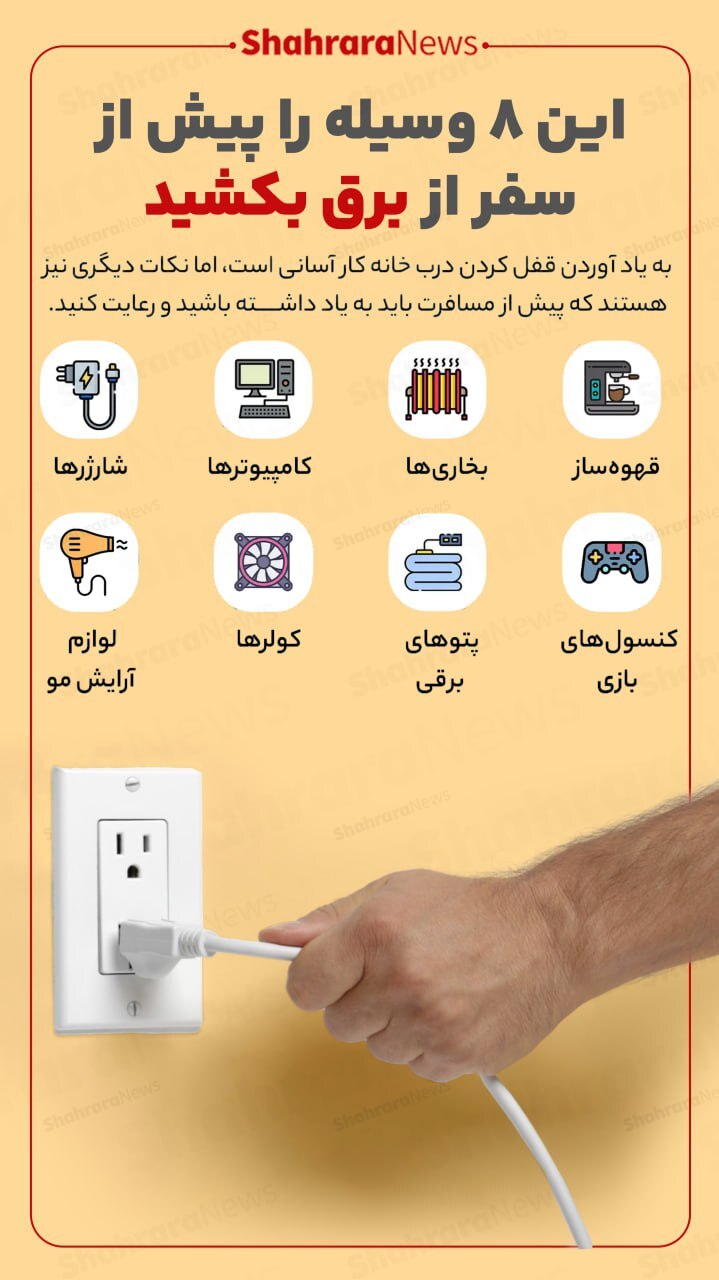 اینفوگرافی| این هشت وسیله را پیش از سفر از برق بکشید
