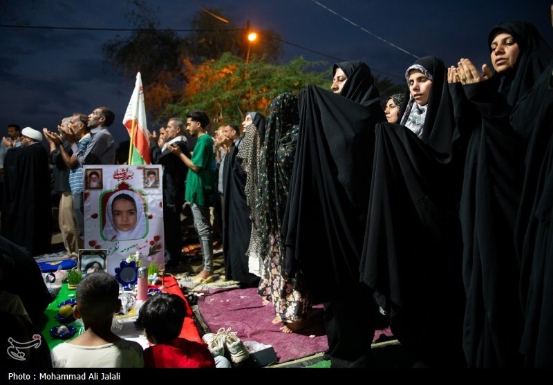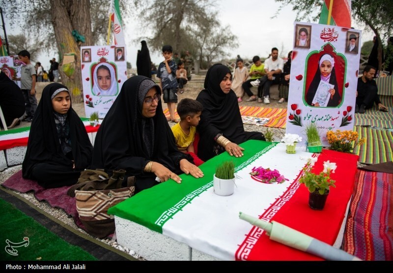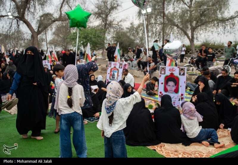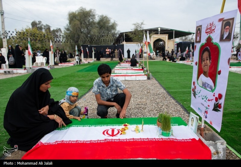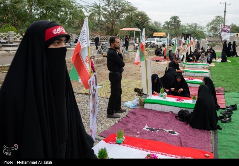گزارش تصویری | لحظه تحویل سال در کنار قبور شهدای مدرسه شجره طیبه میناب