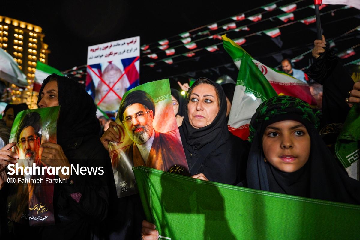 در بیست و چهارمین شب اجتماعات مردمی خیابان امام رضا (ع) مشهد میزبان جمع زیادی از زائران و مجاوران حرم مطهر رضوی بود که به خیابان آمده بودند تا اعلام کنند سنگر را خالی نمیگذارند؛ همچنین در اجتماع بزرگ مردمی «به عشق وطن» جمعی از ذاکران اهل بیت (ع) نیز حضور داشتند.