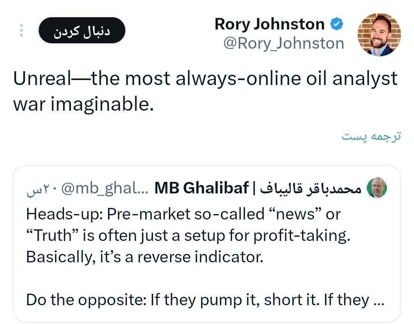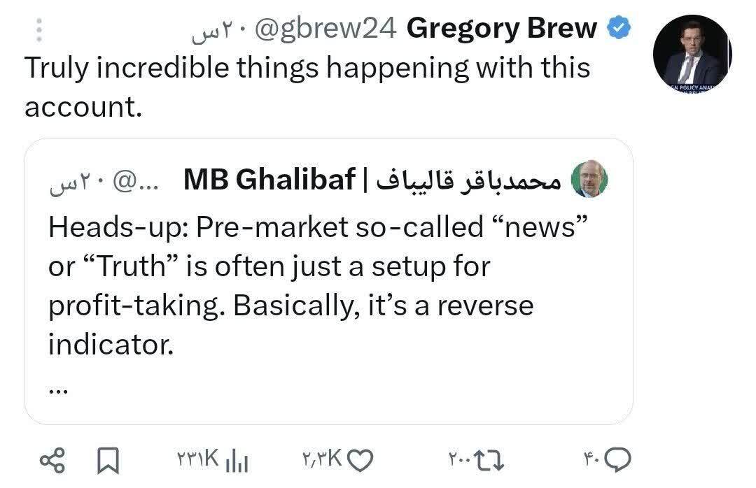 جورج برو تحلیلگر بازار نفت و مسائل ایران هم نوشت: "اتفاقات باورنکردنی با این حساب کاربری رخ می‌دهد. "