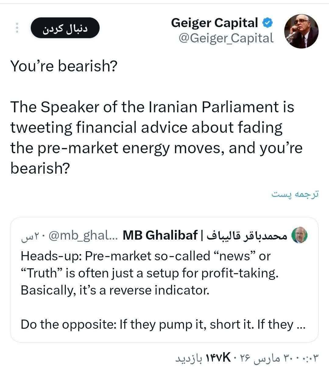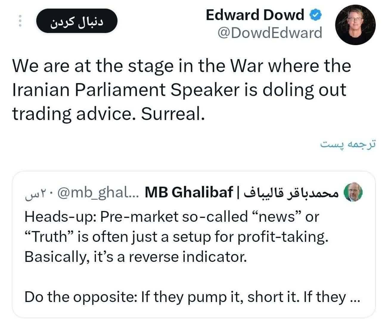 جریان‌سازی توئیت قالیباف درباره بازارهای جهانی