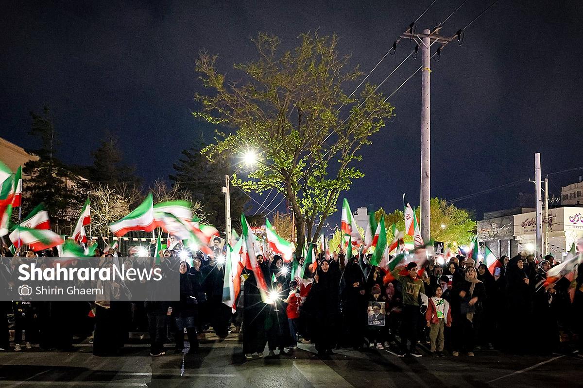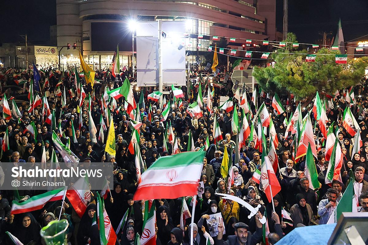 مردم غیور و حماسه ساز مشهد، برای سیویکمین شب متوالی از ۳۲ روز تجاوز دشمن به ایران، پای کار هستند و همچنان، خیابانها در تسخیر اراده آنهاست.