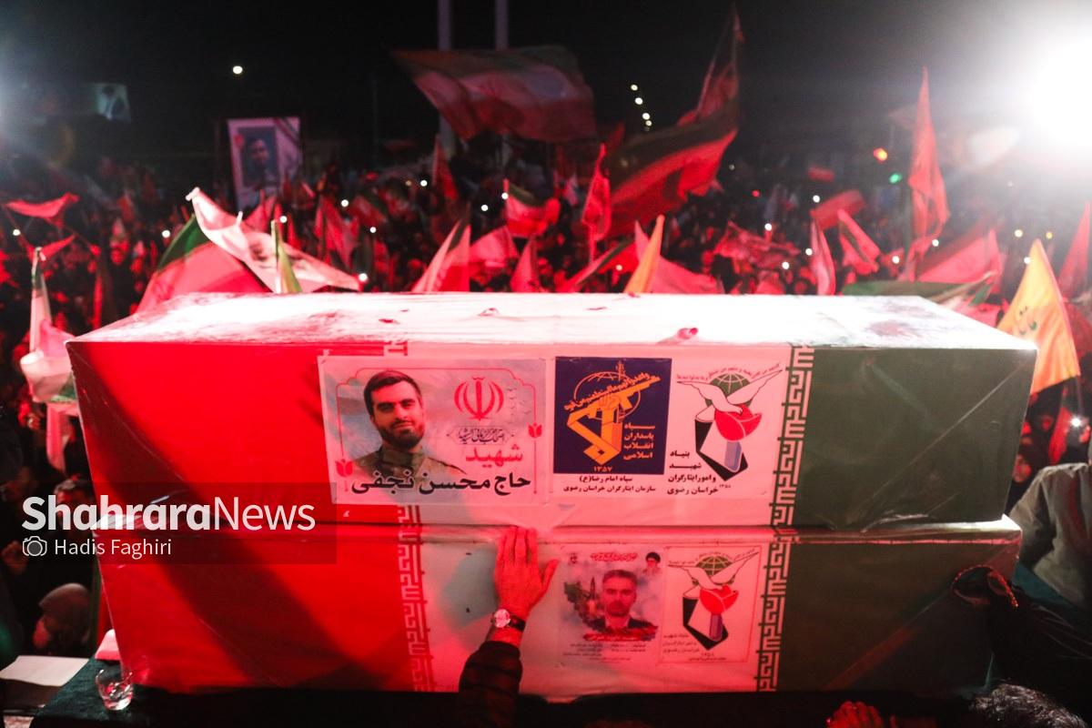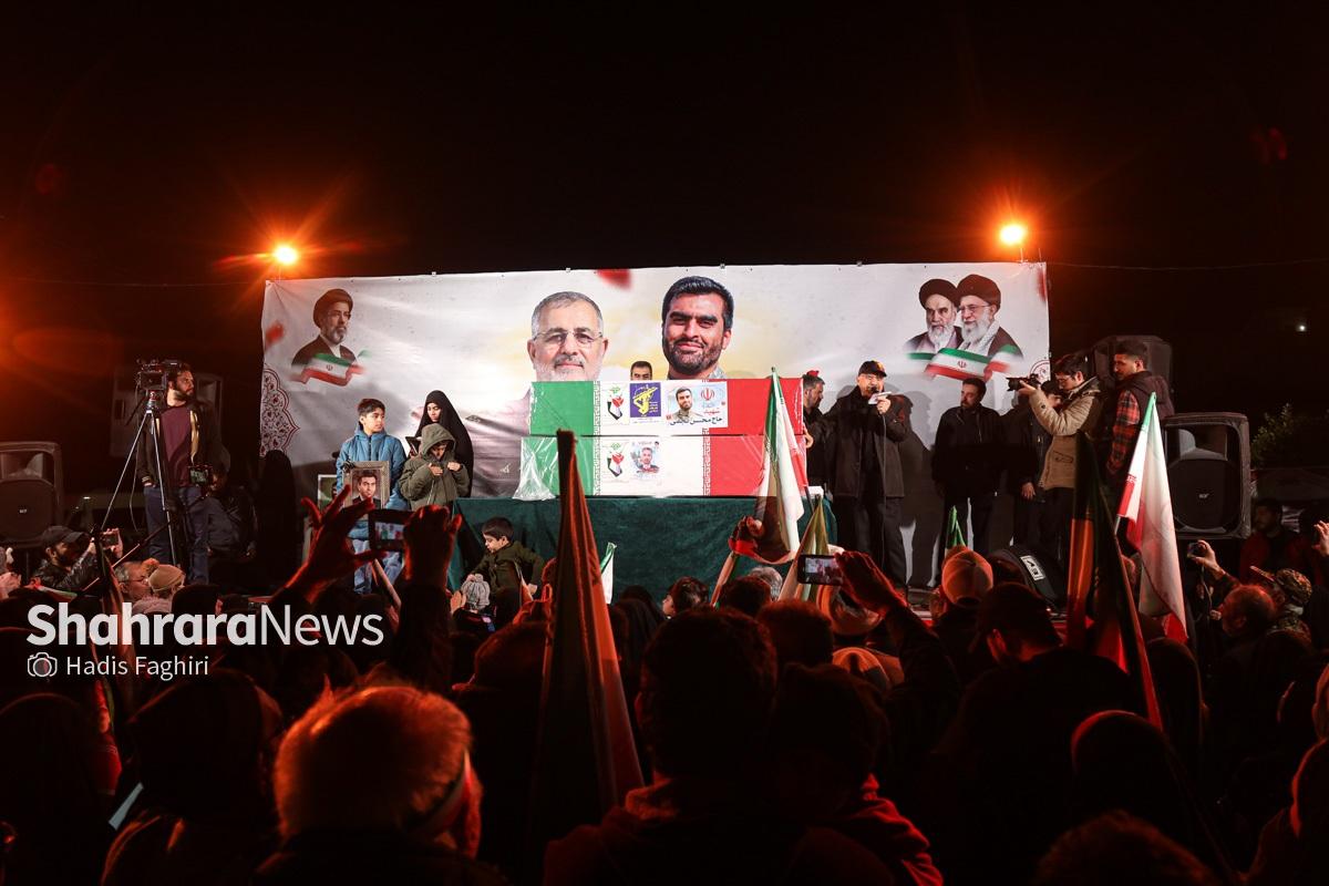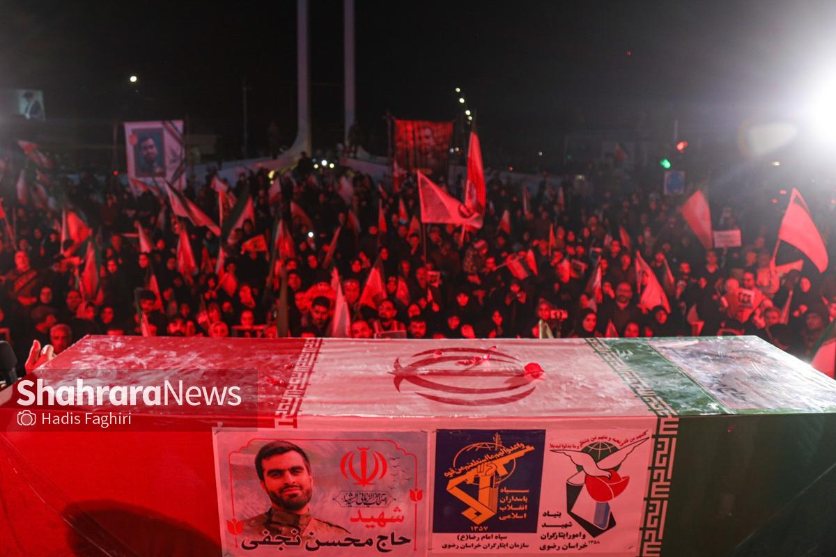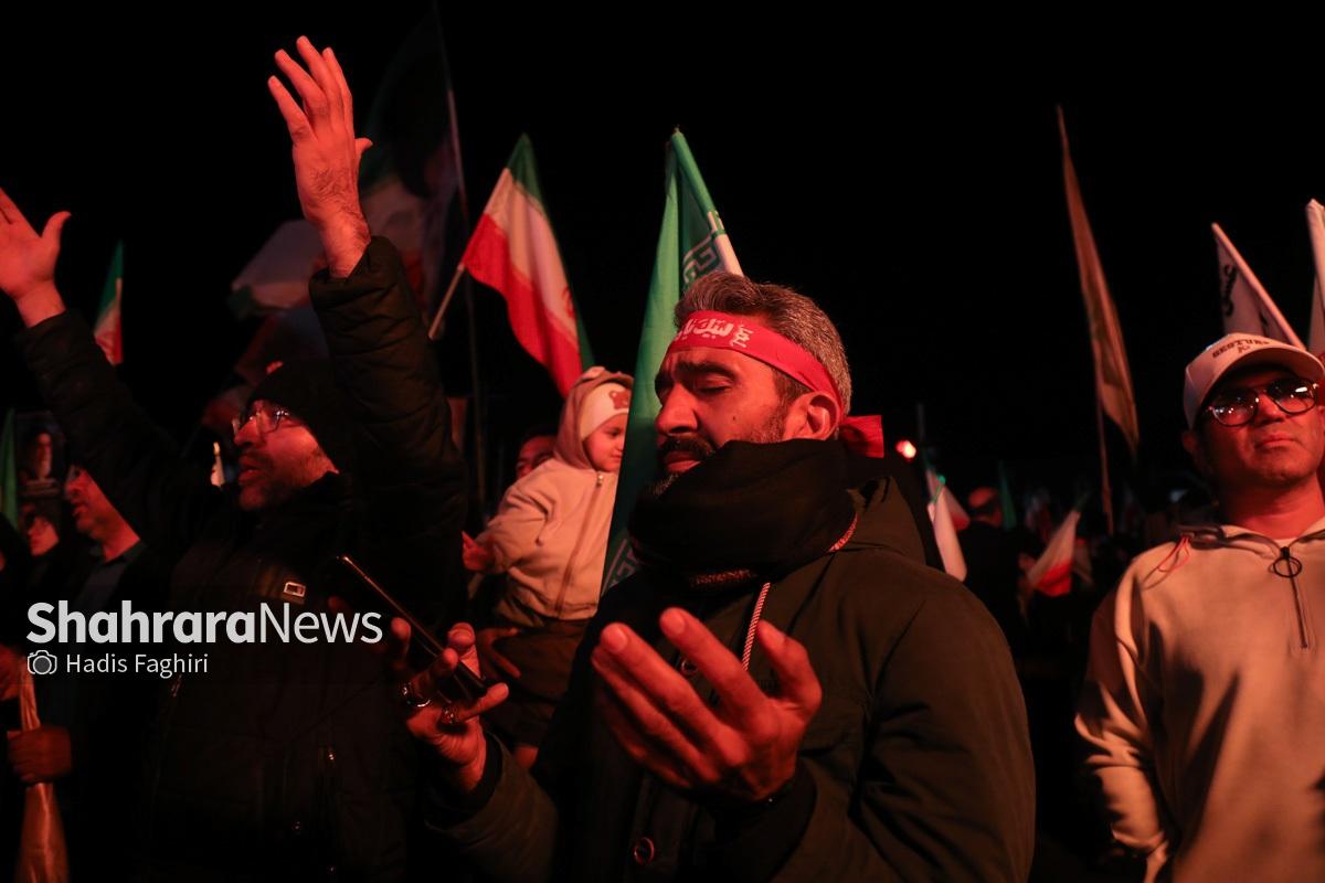 گزارش تصویری | سیوسومین شب حضور حماسی مردم مشهد در خیابانها | مراسم وداع با پیکر شهدای امنیت در میدان فلسطین