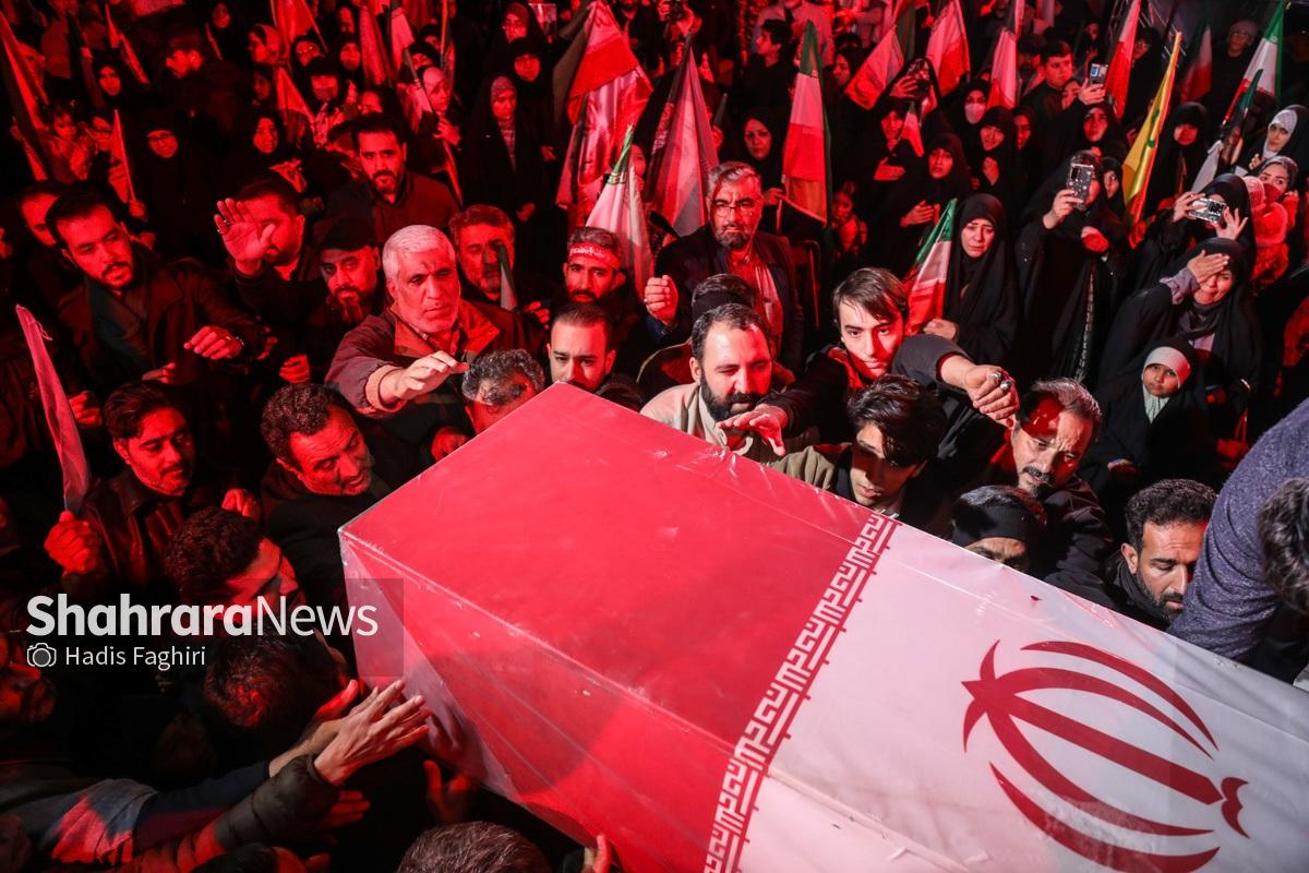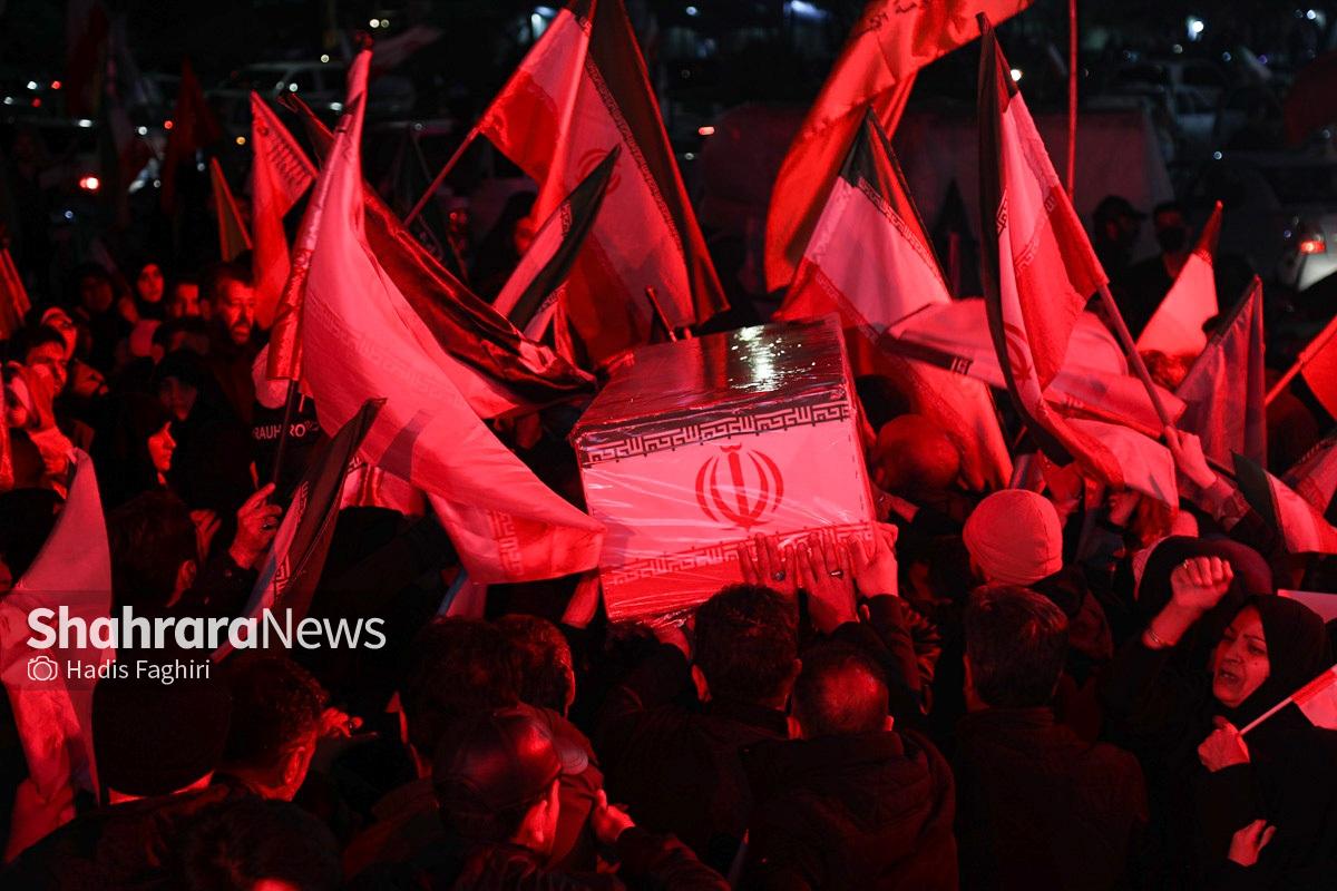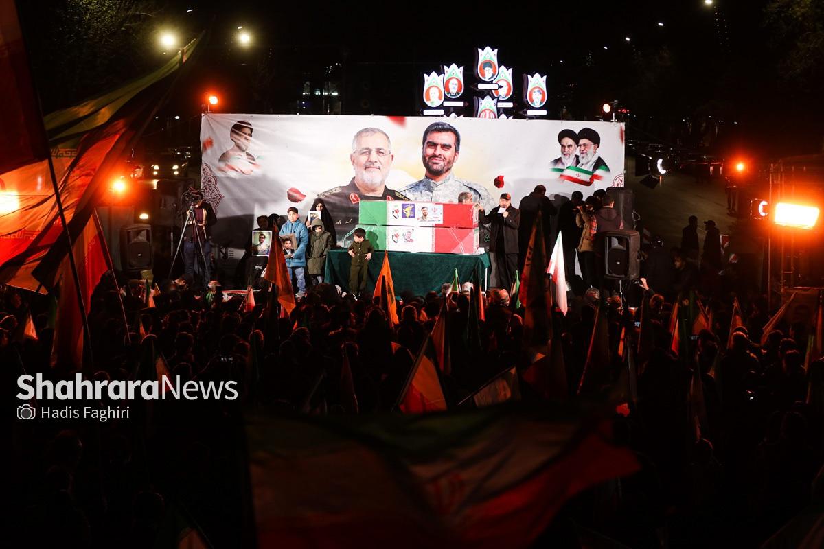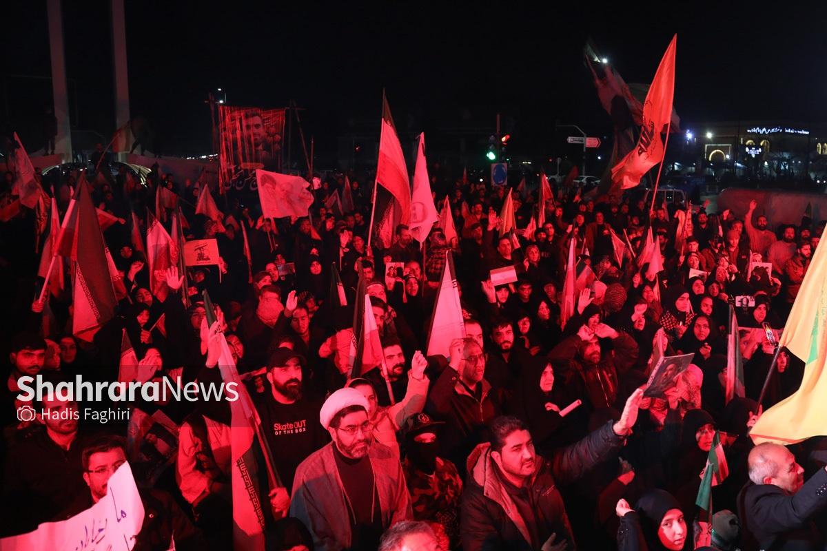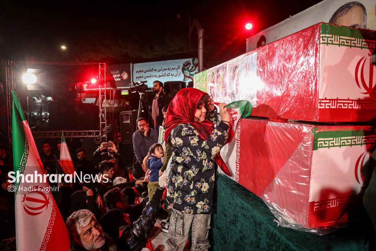 گزارش تصویری | سیوسومین شب حضور حماسی مردم مشهد در خیابانها | مراسم وداع با پیکر شهدای امنیت در میدان فلسطین