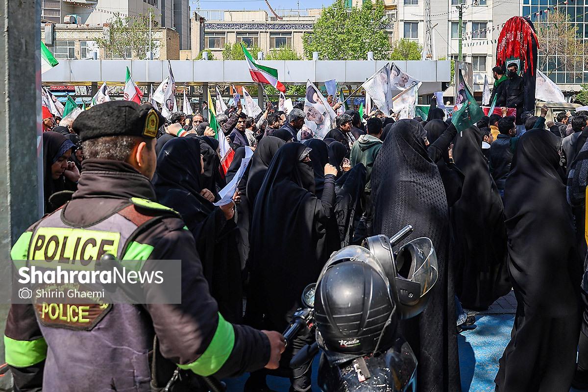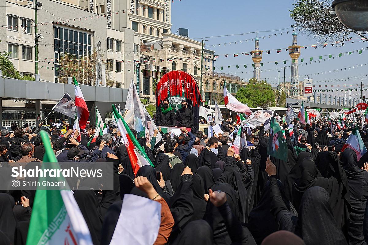 گزارش تصویری | سیوسومین شب حضور حماسی مردم مشهد در خیابانها | مراسم وداع با پیکر شهدای امنیت در میدان فلسطین