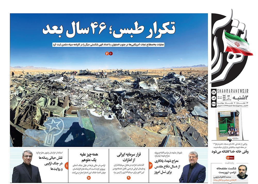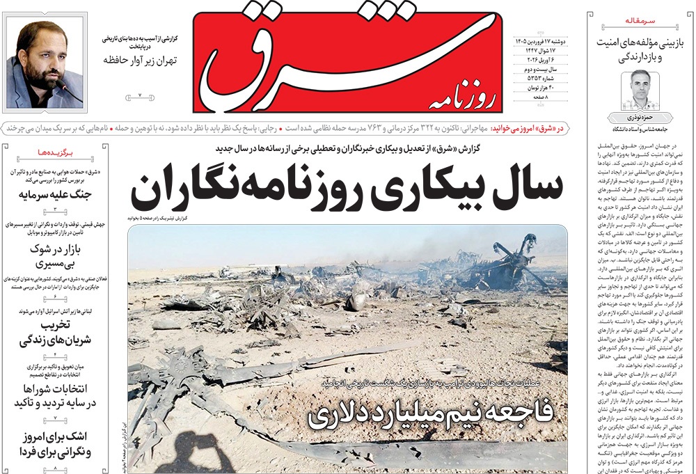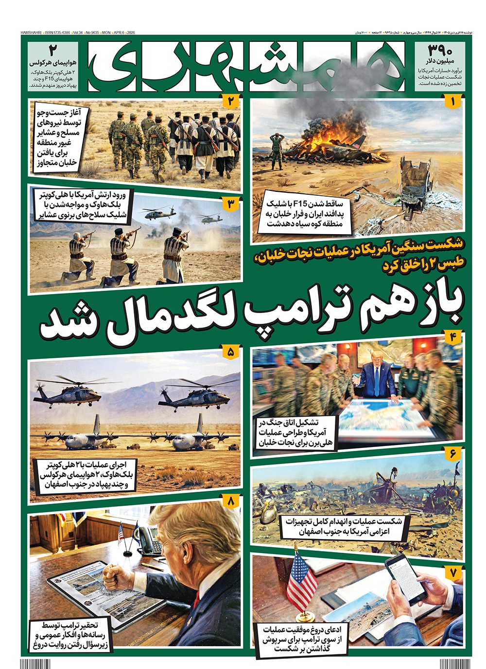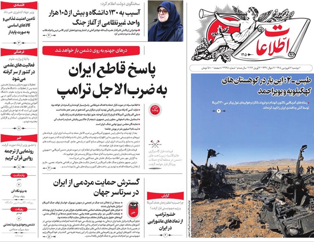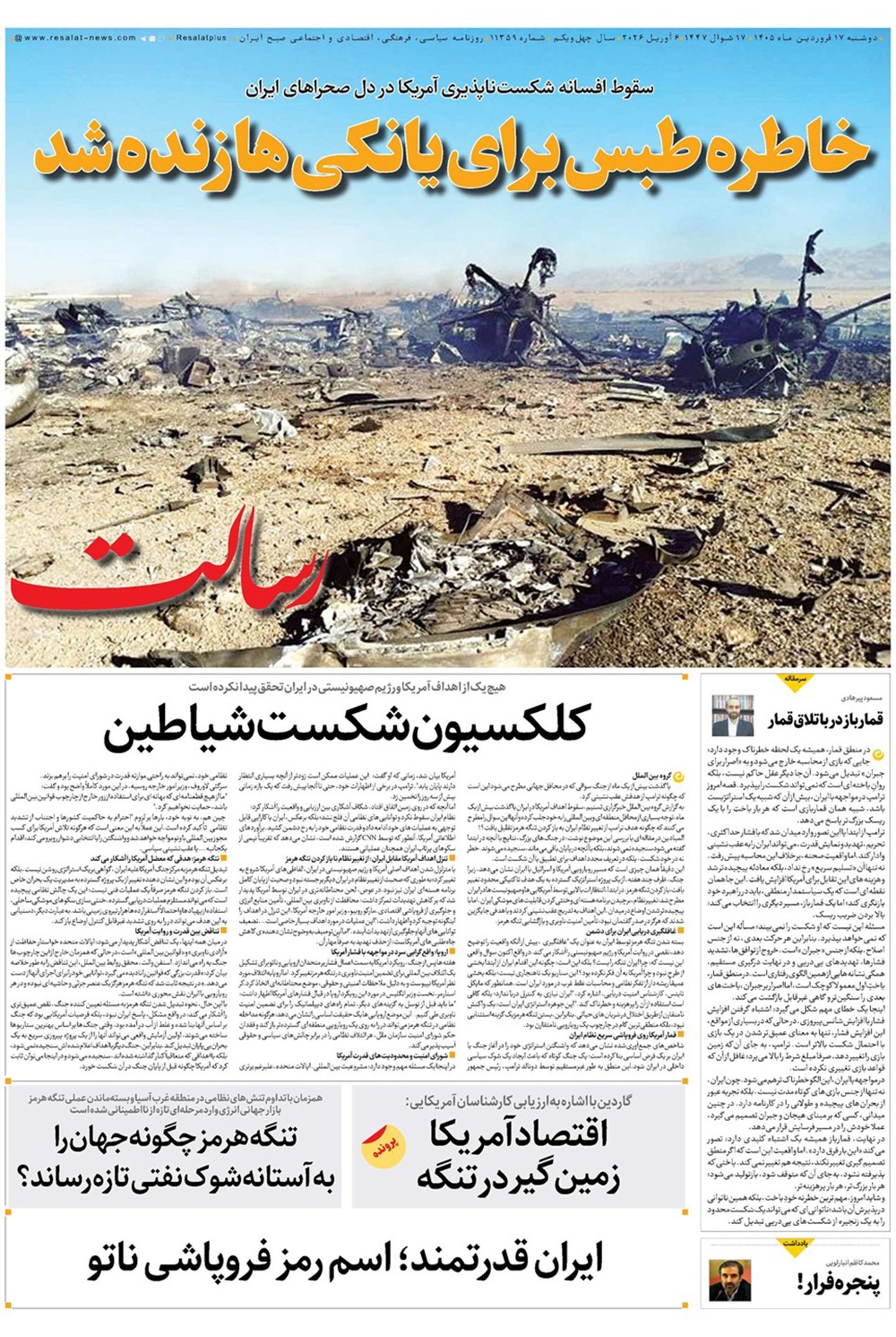 صفحه نخست روزنامه‌های کشور - دوشنبه ۱۷ فروردین ۱۴۰۵