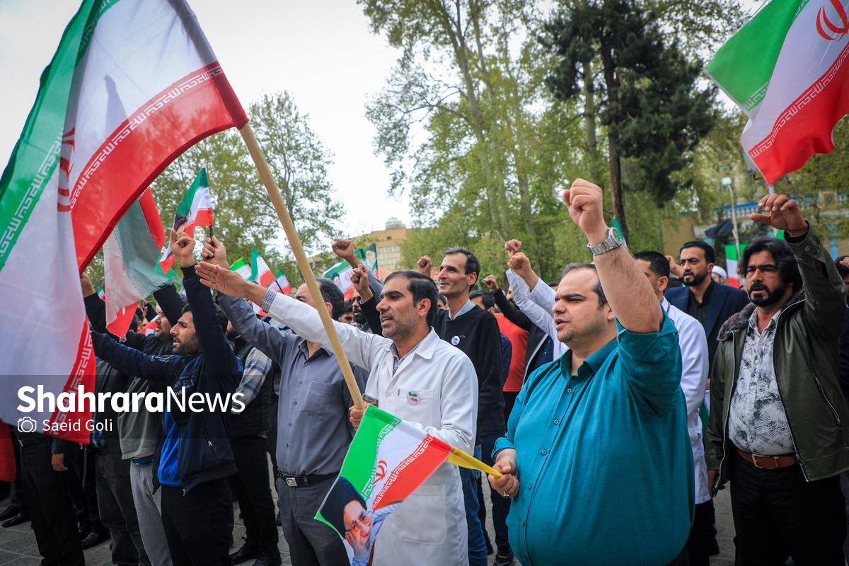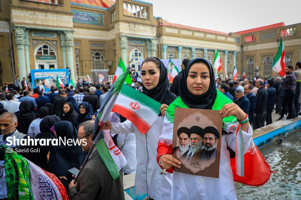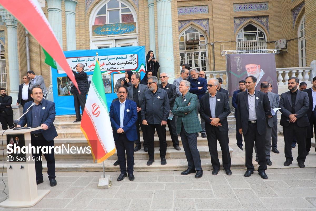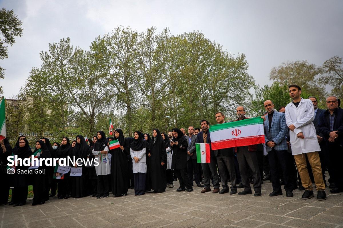 تجمع کادر سلامت مشهد در بیمارستان امام رضا (ع) | دشمنان ما حد و مرز و خط قرمزی ندارند (۱۷ فروردین ۱۴۰۵) + فیلم