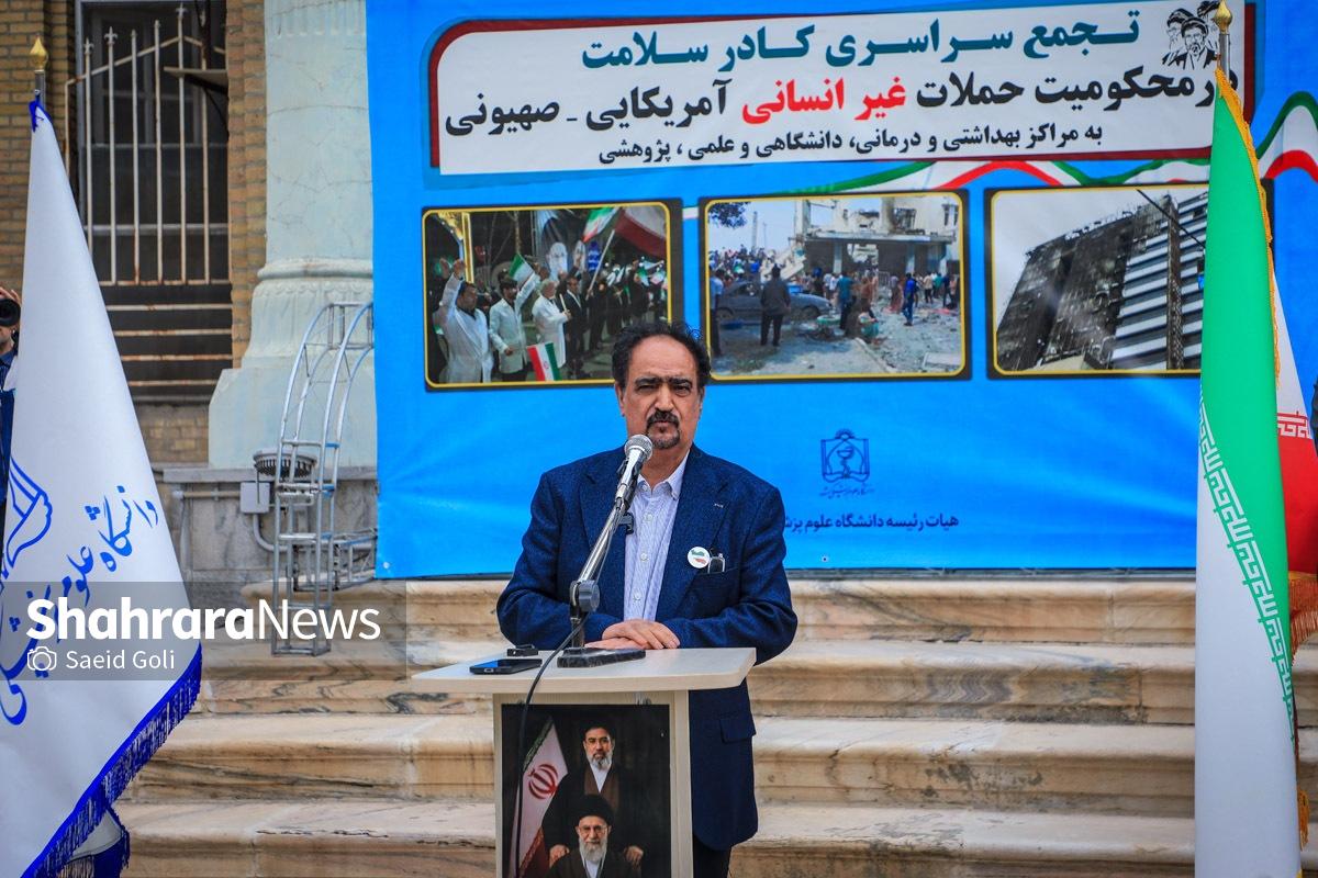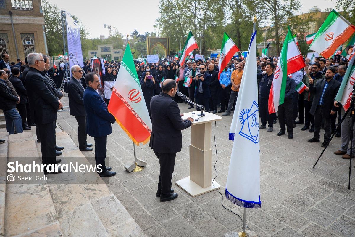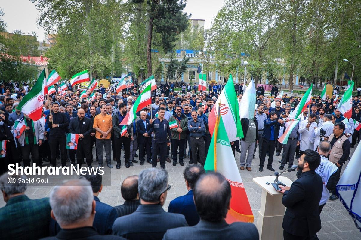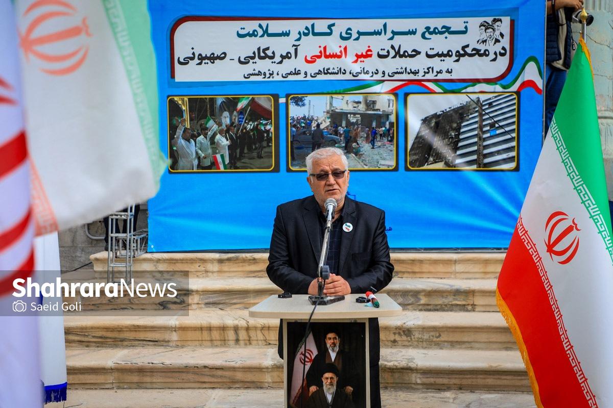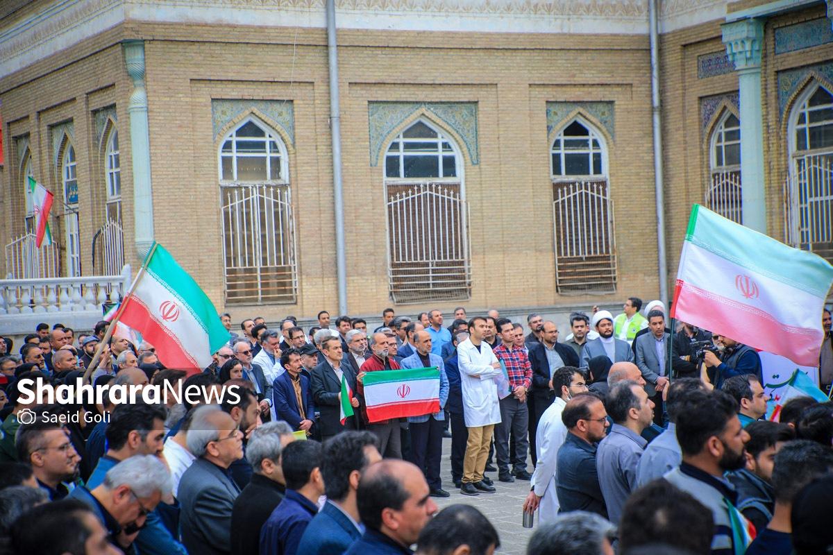 تجمع کادر سلامت مشهد در بیمارستان امام رضا (ع) | دشمنان ما حد و مرز و خط قرمزی ندارند (۱۷ فروردین ۱۴۰۵) + فیلم
