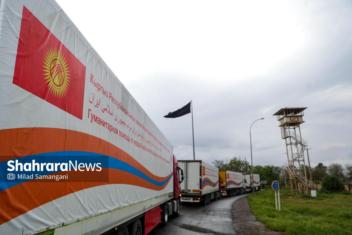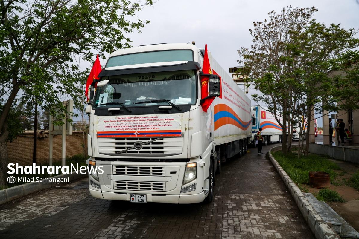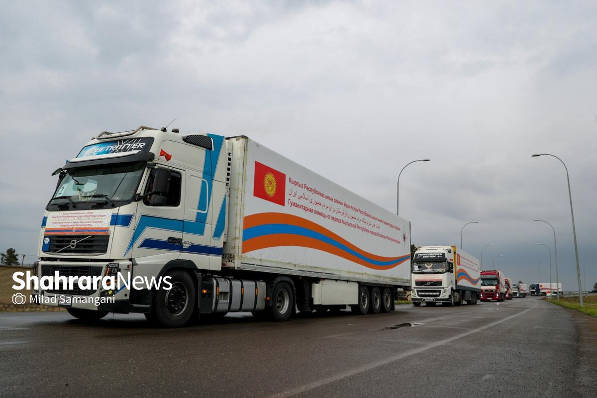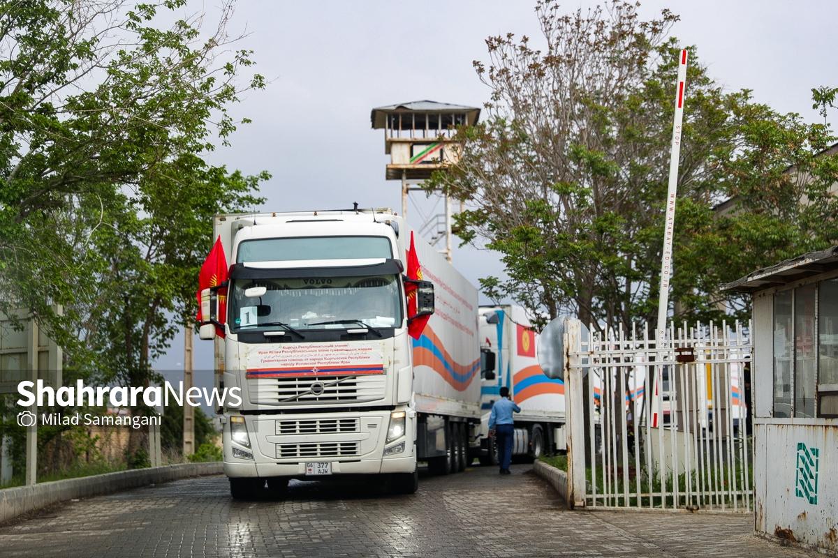 گزارش تصویری | ورود نخستین کاروان کمک‌های بشردوستانه قرقیزستان به ایران از مرز سرخس