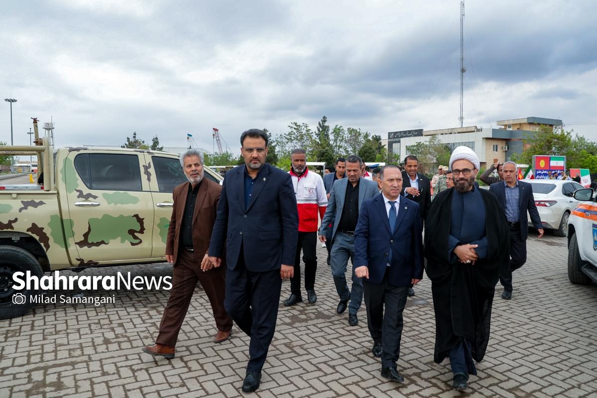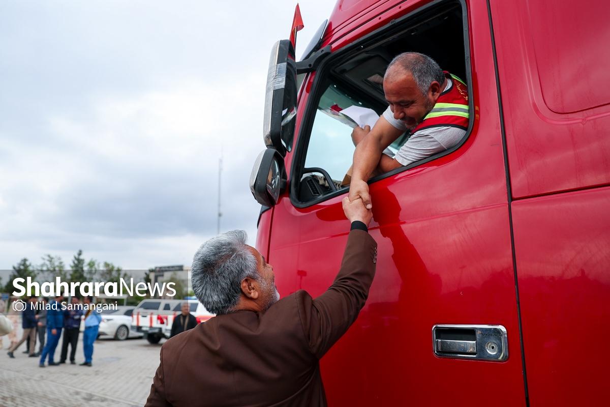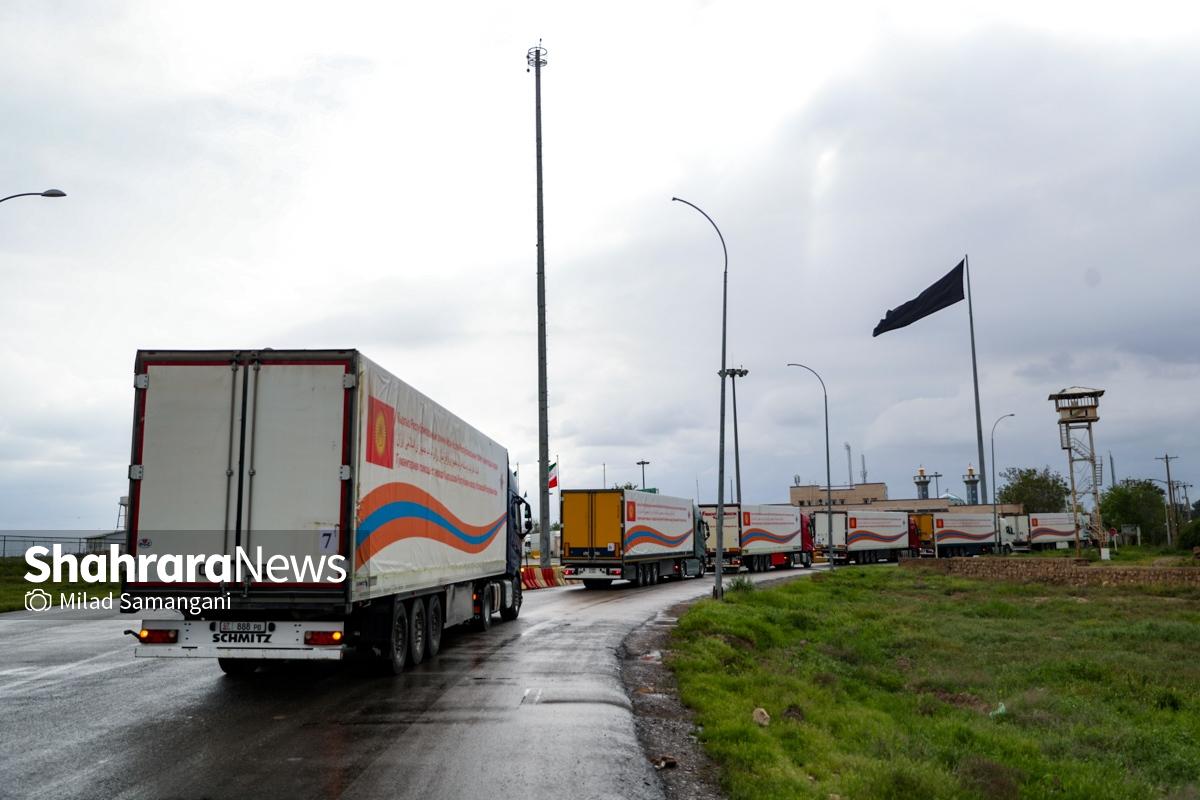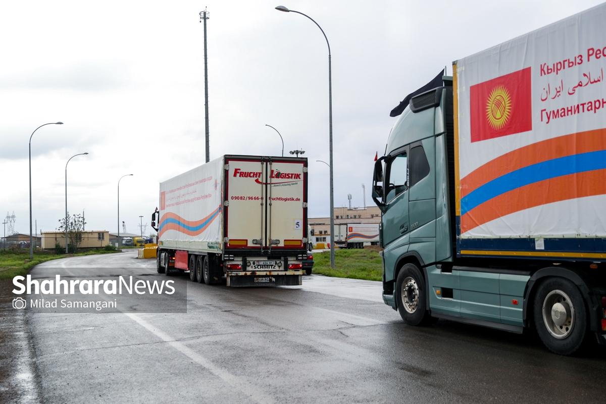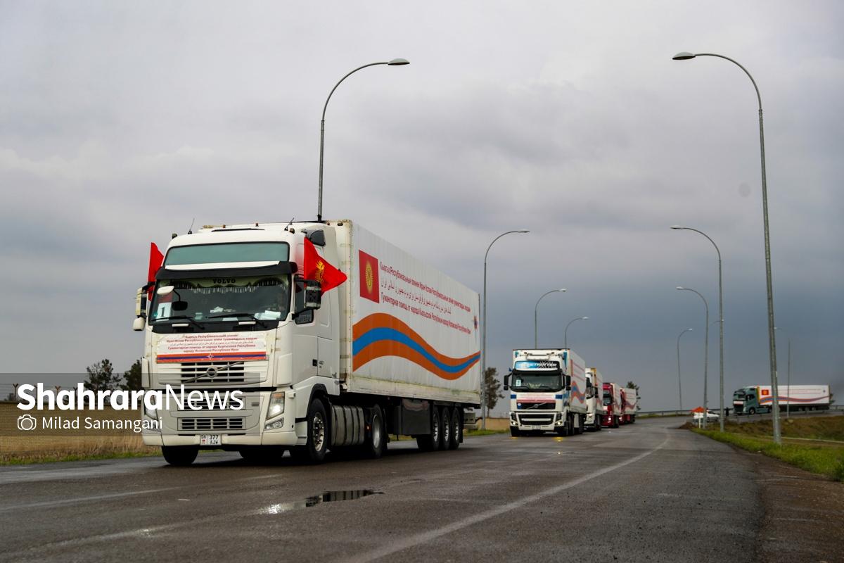 گزارش تصویری | ورود نخستین کاروان کمک‌های بشردوستانه قرقیزستان به ایران از مرز سرخس