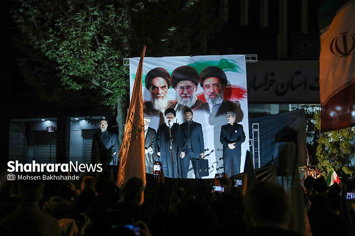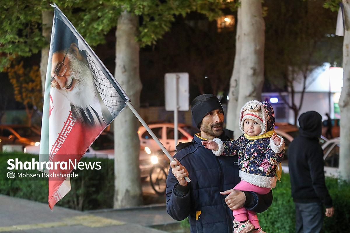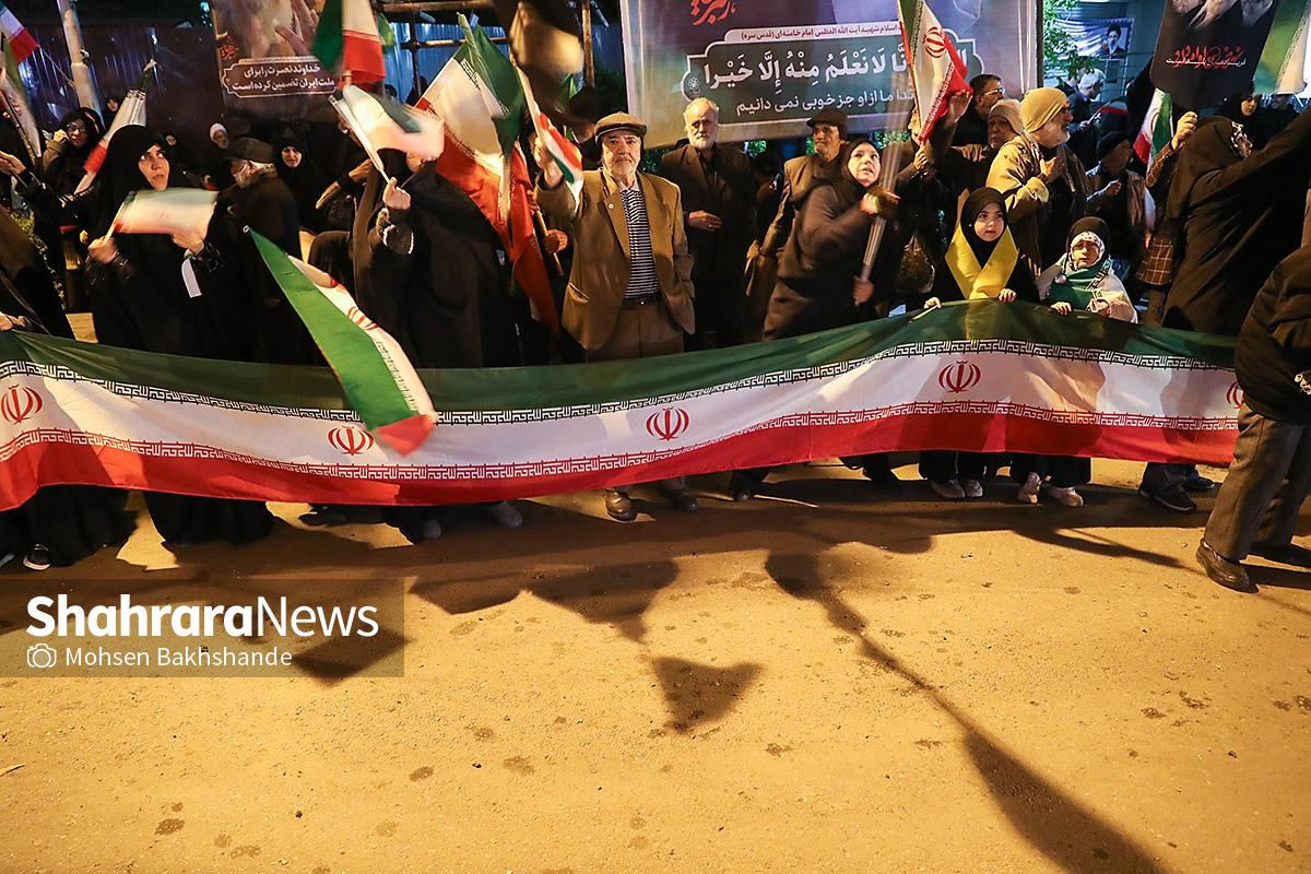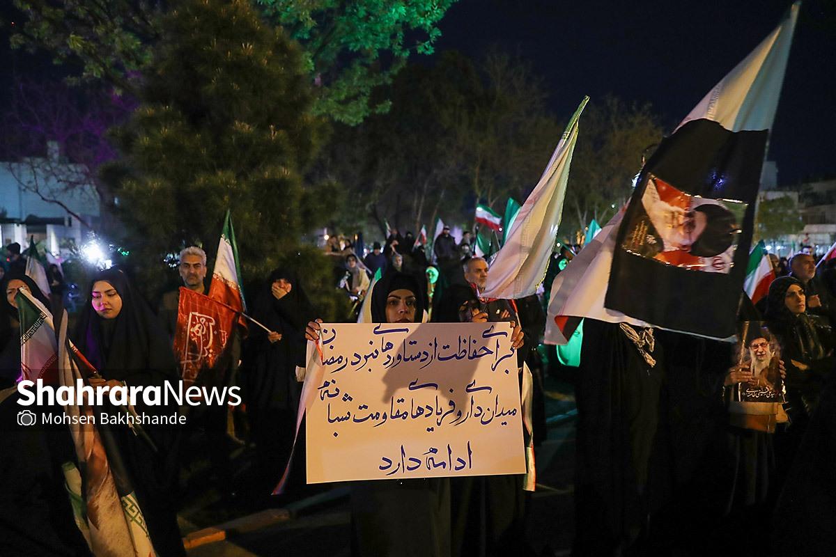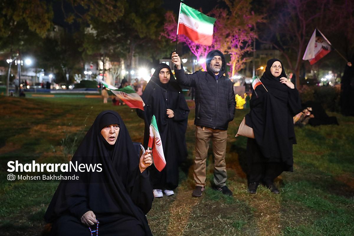 مردم مشهد با در دست داشتن پرچم مقدس ایران سیونه شب است که با اقتدار در خیابانهای شهر حضور دارند و خیابان حالا به سنگری برای مردم تبدیل شده است. تصاویر مربوط به حضور مردم در میدان امام خمینی (ره) میباشد